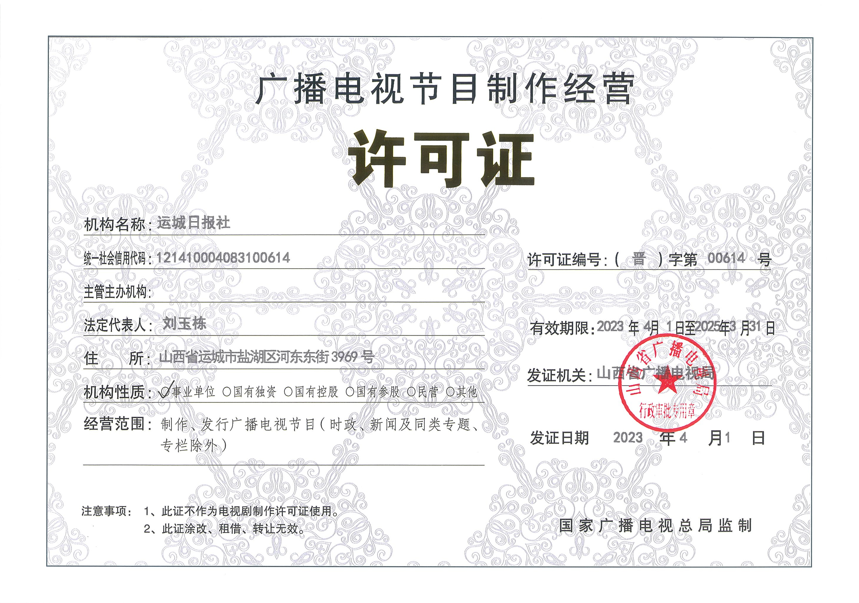 廣播電視節(jié)目制作經營許可證 許可證編號:(晉)字第00614號