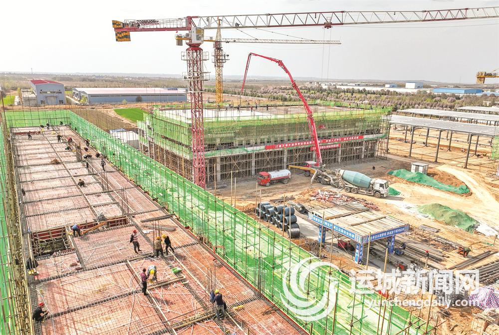 4月9日,萬榮縣第一高級職業(yè)中學(xué)產(chǎn)教融合實訓(xùn)基地項目工地,工人們正在加緊建設(shè),積極服務(wù)“技能萬榮”建設(shè)。 本報記者 金玉敏 攝