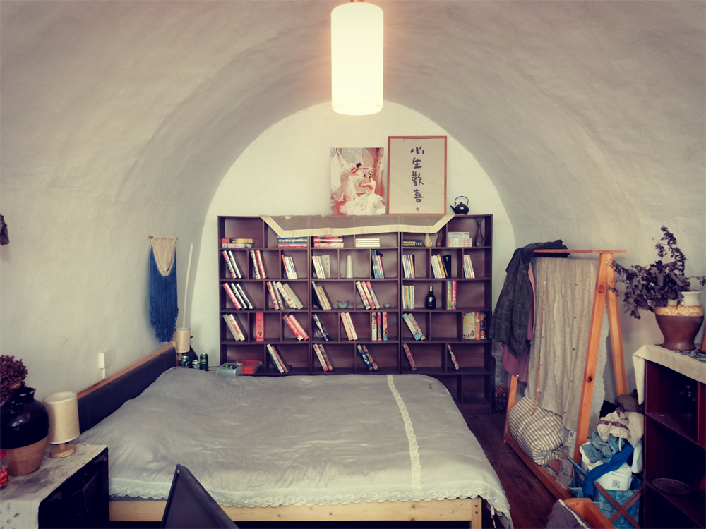 讀者飛花在微信上給記者留言,說有一段已經(jīng)放下的情愫,想和記者聊聊。記者問她在哪里,她說在平陸張店流沙小院,并邀請記者去她那里一見。她拍了兩張小院的照片發(fā)給記者,小院裝修風(fēng)格很獨(dú)特,是記者喜歡的感覺。飛花說正好她的朋友要開車從運(yùn)城去小院,讓他們叫上我,一起到院子里烤紅薯。記者知道自己抵抗不了那小院的魅力,更抵抗不了烤紅薯的誘惑,就隨著飛花的朋友輾轉(zhuǎn)來到了那個(gè)偏僻的小院。小院很有特色,是由一個(gè)老舊的地窨院改造的,據(jù)院主阿浪說,他喜歡戶外旅行,偶然發(fā)現(xiàn)這個(gè)一面靠崖、一面靠溝的荒院子就喜歡上了。于是他多方聯(lián)系主家租了這個(gè)廢棄的地窨院,和幾個(gè)喜歡戶外的朋友集體打造了這個(gè)心靈棲息之地。院子里有四孔窯洞,裝飾各異,給人慵懶且洋氣的感覺,有那種高檔民宿的氣場,卻透著舒適自然的格調(diào)。尤其是院主的房間里,靠墻有個(gè)原木的書架,還有老繡片及唐卡的裝飾,很有氛圍感。