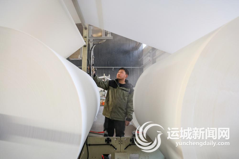 機(jī)械轟鳴、生產(chǎn)忙碌。1月9日,記者在位于臨猗縣楚侯工業(yè)園區(qū)的山西花之護(hù)紙業(yè)有限公司生產(chǎn)車間看到,工人們正加緊生產(chǎn),一派忙碌景象。