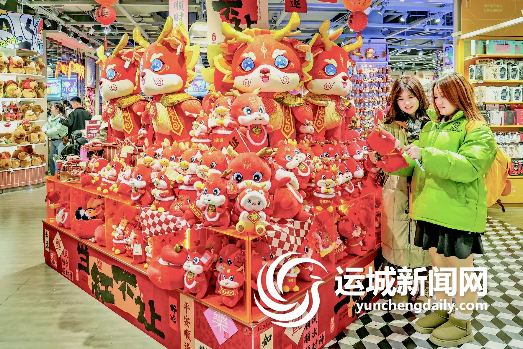 市區(qū)各大商超,新年元素占據(jù)C位。紅色條幅、彩色氣球等各種飾物掛滿賣場,年味十足。“龍”形象成了禮品店的主打元素,從發(fā)夾到玩偶,從紅包到筆記本,各類產(chǎn)品的包裝設(shè)計(jì)上,隨處可見“龍”的身影。過新年穿新衣,喜氣的紅色是新年服裝的主打色,或是三兩好友結(jié)伴,或是一家同行,熙熙攘攘的商場里,男女老少挑選著自己心儀的服飾。商家企業(yè)大搞促銷,琳瑯滿目的年貨禮包堆砌在超市顯著位置,市民在歡快喜慶的音樂里享受著一站式購足年貨的便捷服務(wù)。