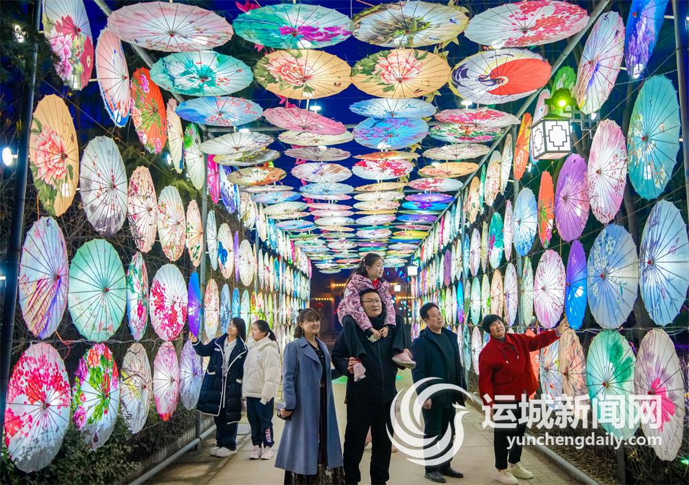 運(yùn)城舜帝公園流光溢彩迎新年。