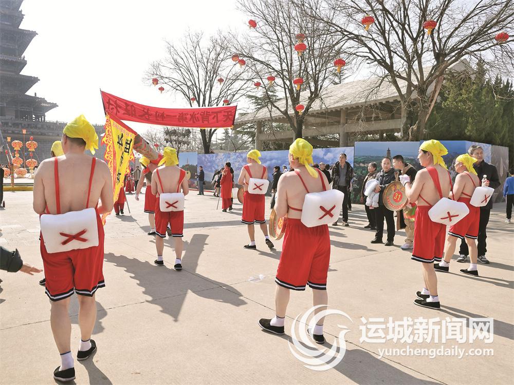 傳統(tǒng)非遺項目“背冰”在永濟鸛雀樓景區(qū)亮相。