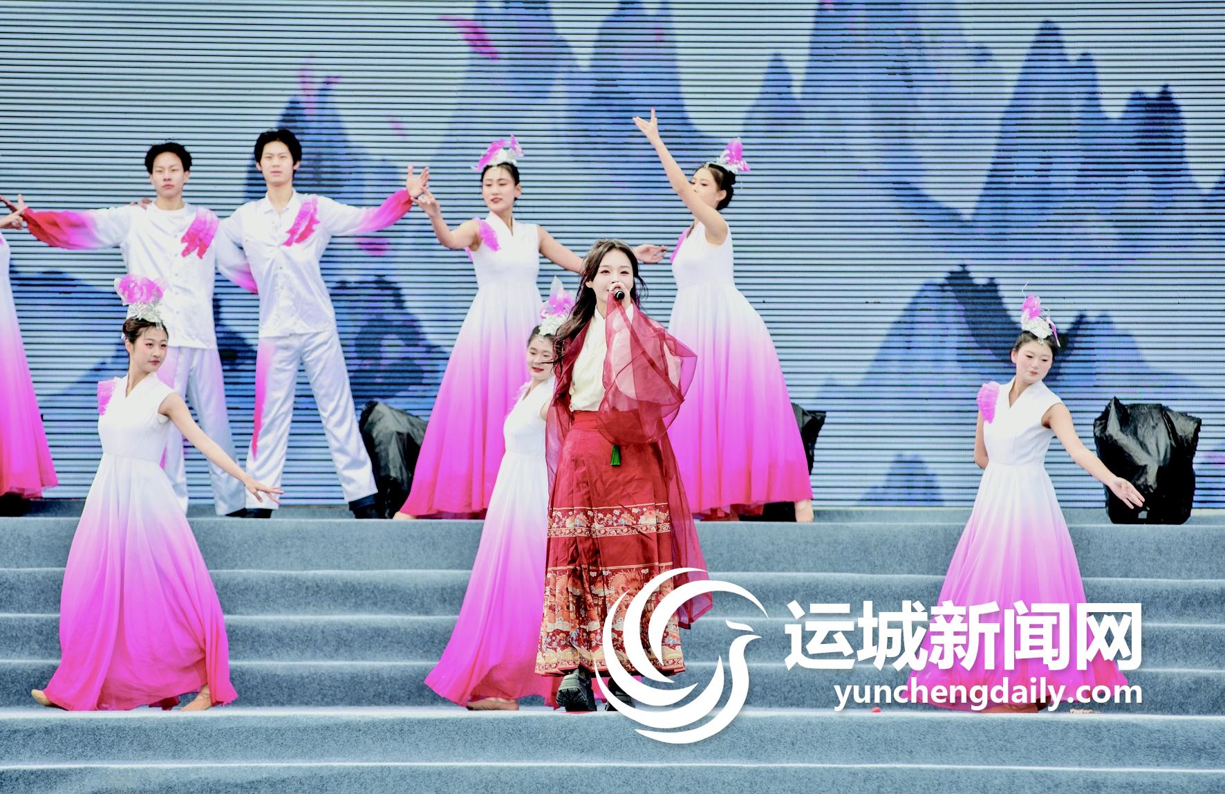 桃花節(jié),既是人民的節(jié)日,也是藝術(shù)的盛會(huì)。開幕式文藝表演當(dāng)屬最大亮點(diǎn)。開場舞《花開山城》特色鮮明,驚艷婉約;古風(fēng)舞蹈《十里桃紅》大氣唯美,充滿詩意;古風(fēng)情景劇《千年一諾》將當(dāng)?shù)靥一锬锇严商异`芝賜予娥皇女英的民間傳說融入歌舞,精彩演繹;詩樂舞《桃云間》以跨越時(shí)空的形式談古論今,反映垣曲滄桑巨變、舊貌新顏,從自然風(fēng)光到人文情懷,充分展現(xiàn)山水垣曲文旅新韻。特別是人氣歌手“橙色夫妻”“魚閃閃”的精彩獻(xiàn)唱,為桃花節(jié)積攢了人氣和熱度。