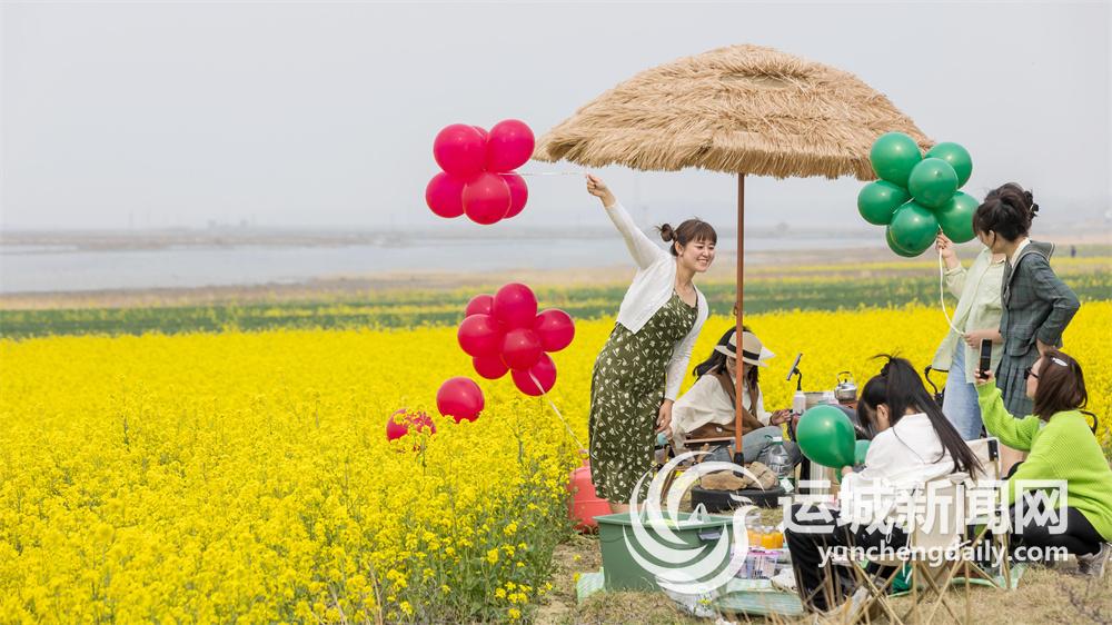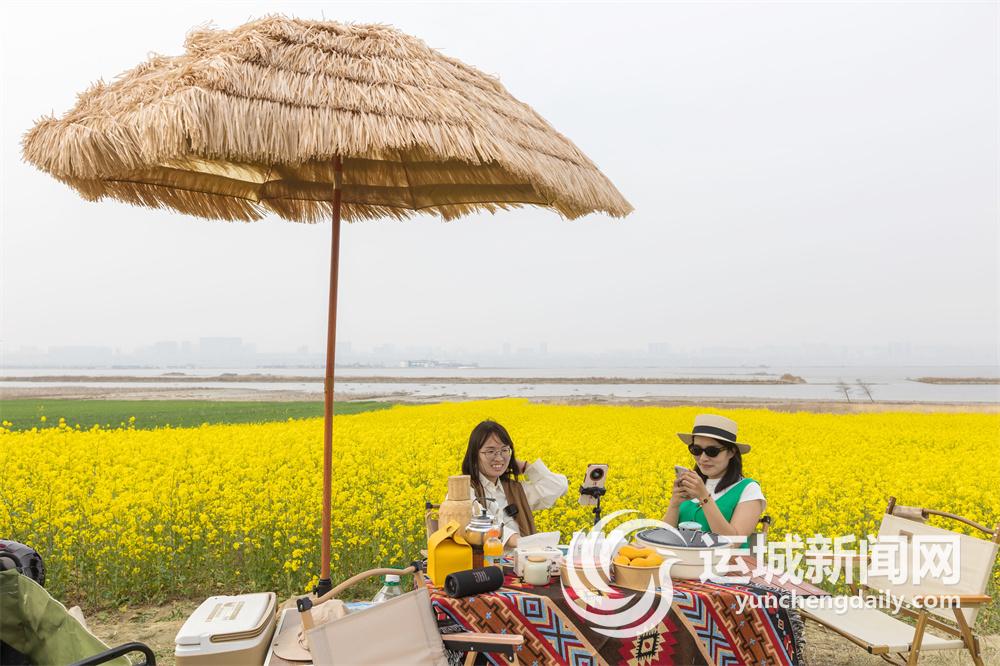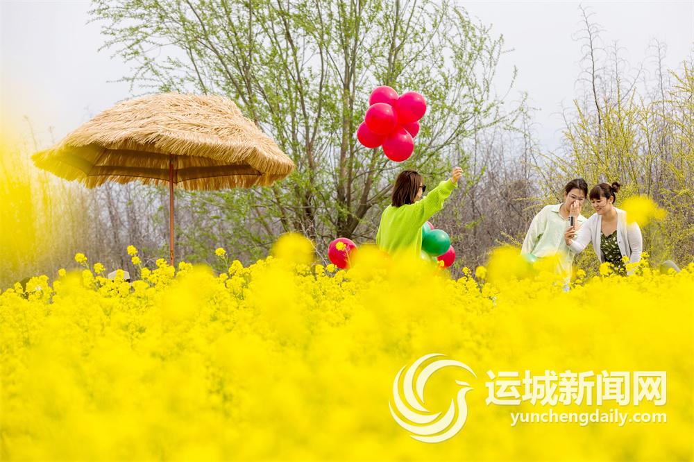 近日,運城鹽湖岸畔的油菜花競相綻放,美不勝收,吸引了眾多游客前來踏青打卡。