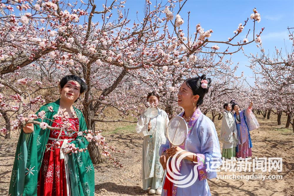 杏花在運(yùn)城,沒有一絲驕矜,市區(qū)街角有它,城鎮(zhèn)郊區(qū)有它,鄉(xiāng)間小道旁有它,山間幽谷處也有它……或是幾枝幾簇默默綻放,于城市中為市民辟得一片靜謐休閑之地;或是蔚然成林,千樹杏花迎春笑,和樹下辛勤勞作的人們一起盼望好收成;或是連片成海,把一個個山頭山脊裝扮起來,綿延數(shù)十里。杏花的美無須多言,從枝頭蔓延開來,白如雪、粉如霞,滿目似錦,嬌艷且燦爛,鮮活中透著俏麗。漫步在花影婆娑的樹下,屏息聆聽一朵花開的聲音,低眉輕嗅一縷氤氳的芬芳。