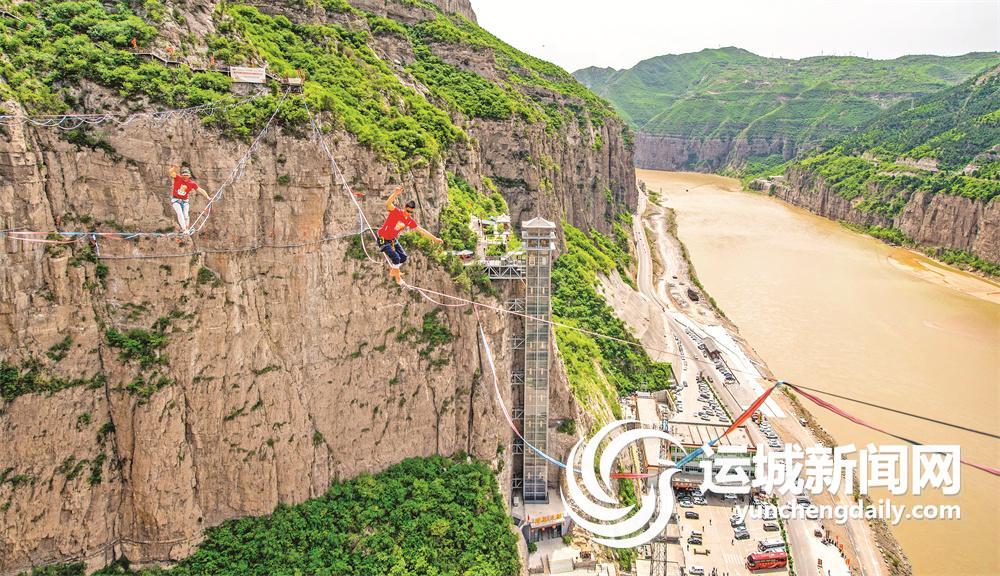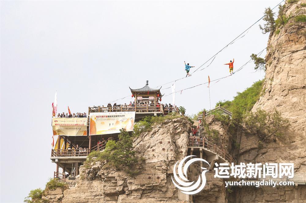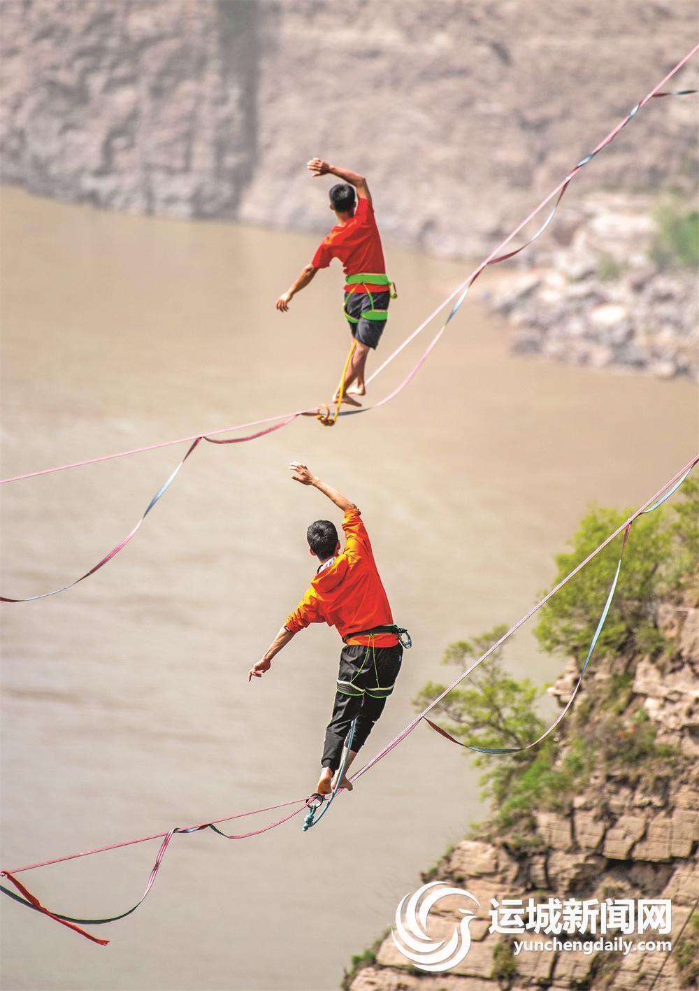 運城晚報訊(記者 荊毅萍)峽谷懸崖之間,滾滾波濤之上,百米高空,腳踩僅有2.5厘米寬的扁帶,翻轉(zhuǎn)、跳躍、倒立、跑步、跨越……4月20日、21日,“登天梯 躍龍門”黃河大梯子崖高空扁帶國際挑戰(zhàn)賽暨2024CHT中國高空扁帶巡回挑戰(zhàn)賽-運城站在河津黃河大梯子崖景區(qū)舉行。來自中國、法國、西班牙等國家和地區(qū)的20名國內(nèi)外頂尖運動員,在高空中赤腳上演驚險競技,爭奪世界“高空跑步之王”。