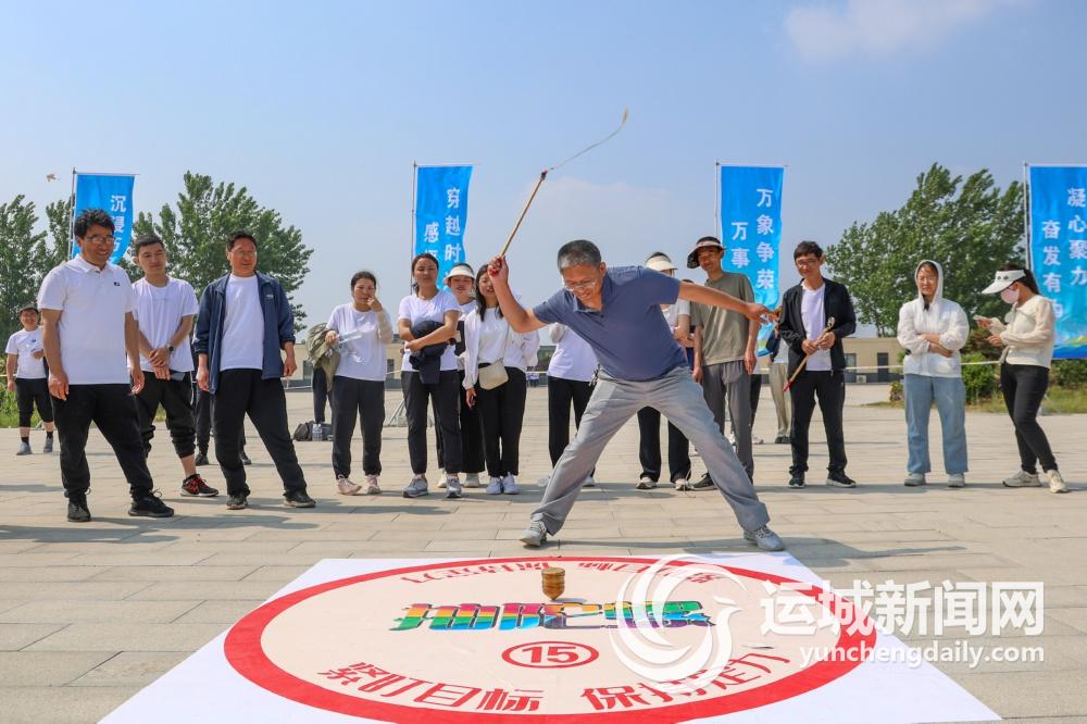 后土祠廣場上,放風(fēng)箏的參賽隊(duì)伍以鳶會友,在藍(lán)天下一爭高低;跳“房子”的選手們巧妙投擲、輕輕跳躍,手腳并用爭第一。黃河農(nóng)耕文明博覽園內(nèi),抽陀螺比賽場地上,鞭鞘兒“噼啪噼啪”響,陀螺滴溜滴溜轉(zhuǎn),參賽選手們緊盯目標(biāo)、奮力揮鞭,讓陀螺轉(zhuǎn)得更快、時間更長;拔河比賽中,大家手握麻繩,竭盡全力,團(tuán)結(jié)一致用力拉……