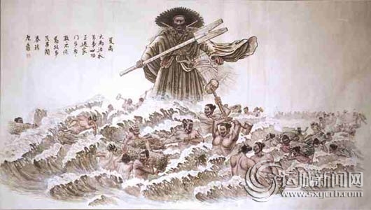 而治水成就最大的當(dāng)數(shù)大禹。《孟子?騰文公上》記載:“當(dāng)堯之時,天下猶未平也,洪水橫流,泛濫于天下”。禹的父親鯀(gun,三聲),受帝堯之命,治水于今天的運城市芮城縣境內(nèi)。他用筑堤截流的辦法治水九年,反而積細成巨,使水害愈演愈烈,最后受到懲罰被殺。這件事深深地刺痛了年輕的大禹,也激勵著他下定決心根治水患,完成父親未竟的事業(yè)。新婚第三天,禹便離家治水。他深刻反思并汲取他父親治水失敗的教訓(xùn),面對水蓄不泄,一片汪洋澤國,改“堵塞”為“疏導(dǎo)”,順乎自然,因勢利導(dǎo)。大禹首先鑿開龍門(今運城河津市),分洪下泄。自此,龍門亦稱禹門。然后,他又率領(lǐng)民眾,開山挖河,把滔滔洪水成功地導(dǎo)入河海之中,平息了水患,解除了百姓的災(zāi)難。大禹在治水的過程中,為后人留下了開三門、望夫臺、錯開河、米湯溝、禹王城、大禹廟、大禹渡、禹王墳等眾多遺址和美麗動人的神奇?zhèn)髡f。特別是他居外治水十三年,三過家門而不入的事跡,更是被世人傳為美談。后人為了緬懷大禹的功德,表達心中的敬仰之情,把他與堯、舜一起并稱為古代“三圣王”?! ?/p>