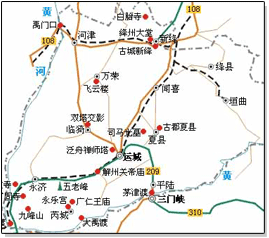 運(yùn)城,古稱河?xùn)|,位于山西省西南部,地處晉陜?cè)S河“金三角”地區(qū),與河南省三門峽市、陜西省渭南市隔河相望,是中華民族和中華文明的重要發(fā)祥地之一。春秋時(shí)統(tǒng)屬晉國,晉獻(xiàn)公于公元前669年定都于絳(今絳縣)。韓、趙、魏三家分晉后,運(yùn)城屬魏,當(dāng)時(shí),魏國的都城在安邑(今夏縣禹王城一帶)。秦始皇統(tǒng)一中國,設(shè)36郡,運(yùn)城屬河?xùn)|郡,治所安邑。以后兩千多年,建置頻繁,但一直沿用“河?xùn)|”這一稱謂。運(yùn)城,因“鹽運(yùn)之城”而得名,它是中國唯一一座因鹽而建立起來的城市,史稱“鹽運(yùn)專城”。