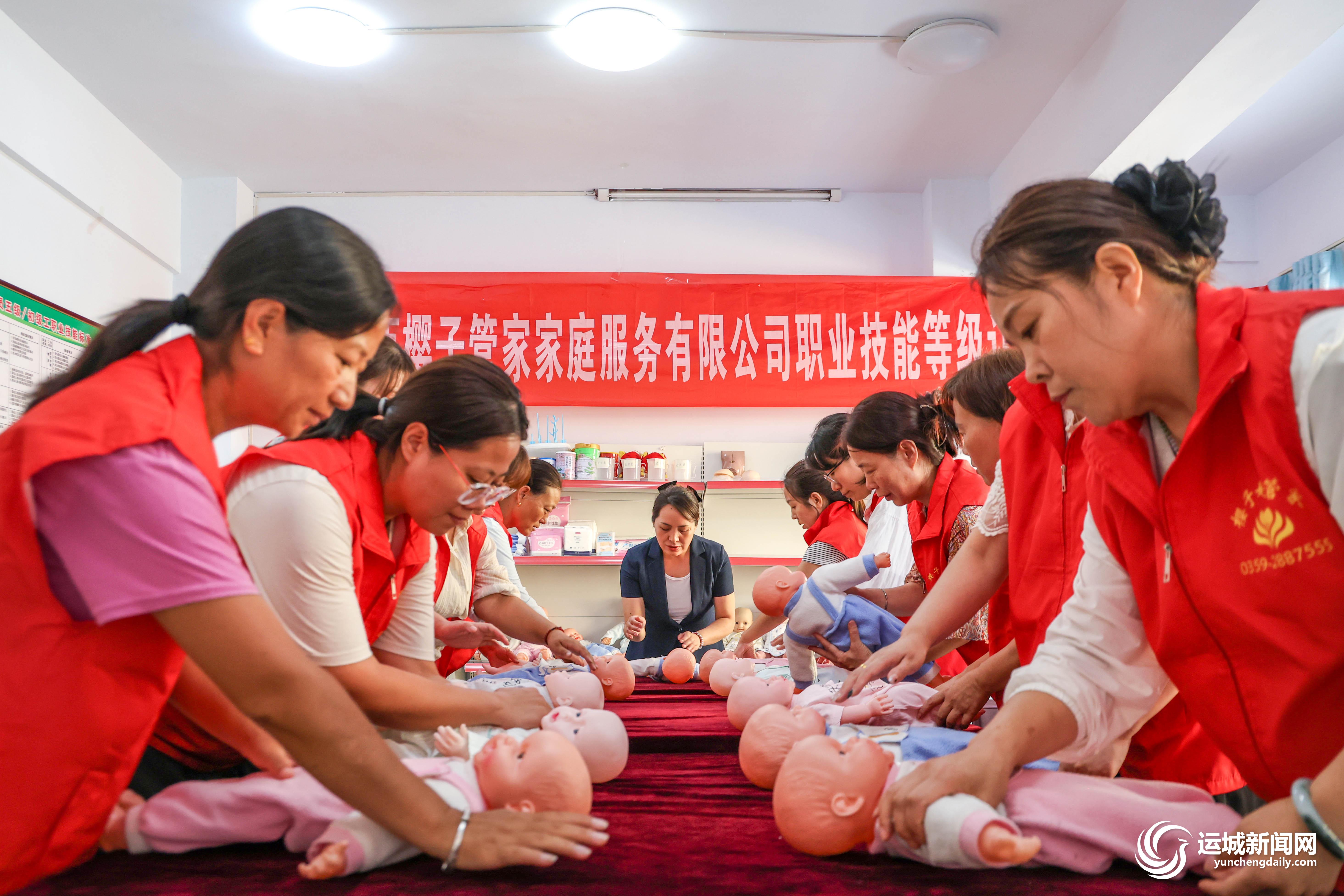 9月4日,在櫻子管家的培訓(xùn)教室內(nèi),學(xué)員們在學(xué)習(xí)新生兒護理技能。