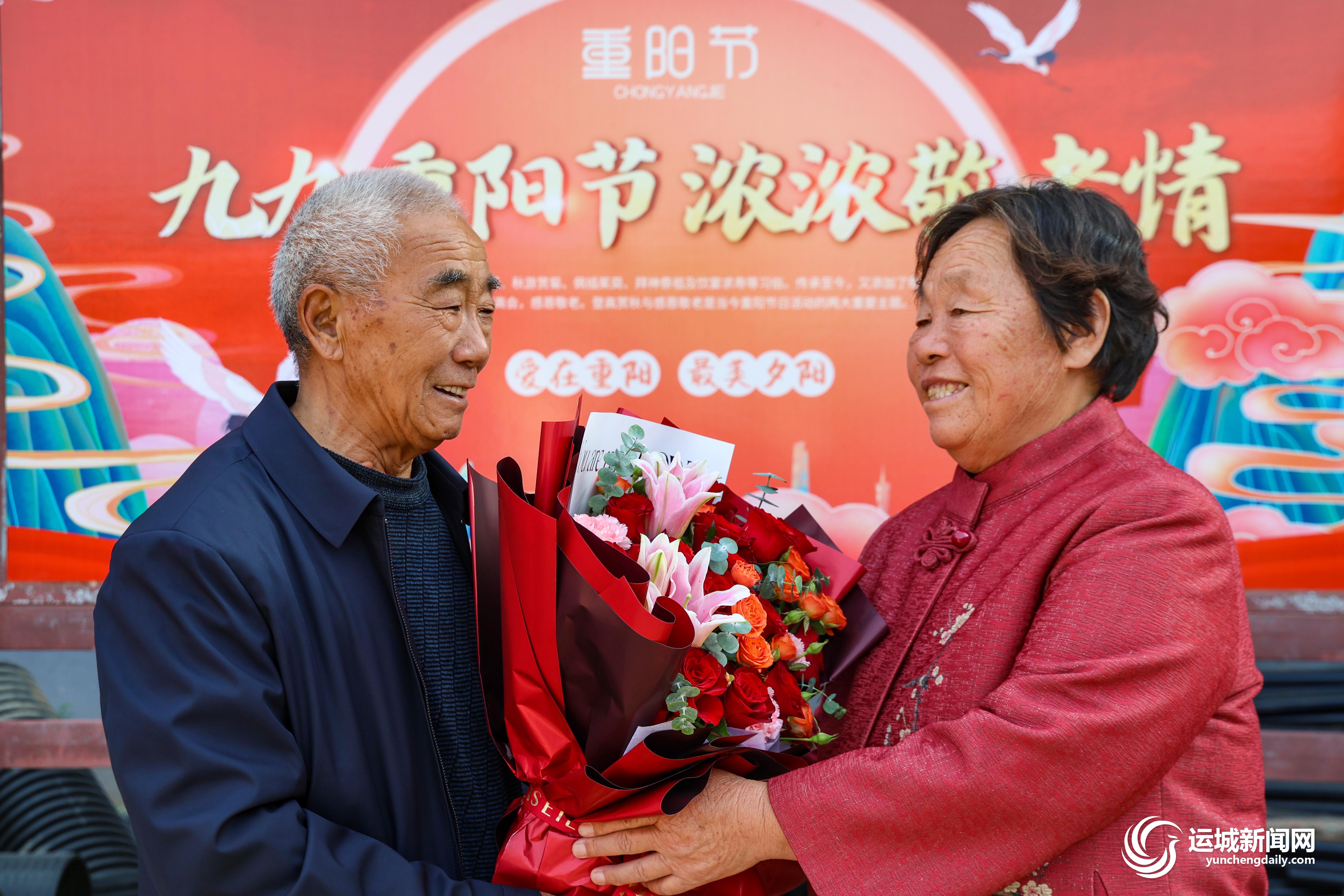 10月10日,鹽湖區(qū)解州鎮(zhèn)西元村的85對金婚夫婦一同慶祝重陽節(jié)的到來。