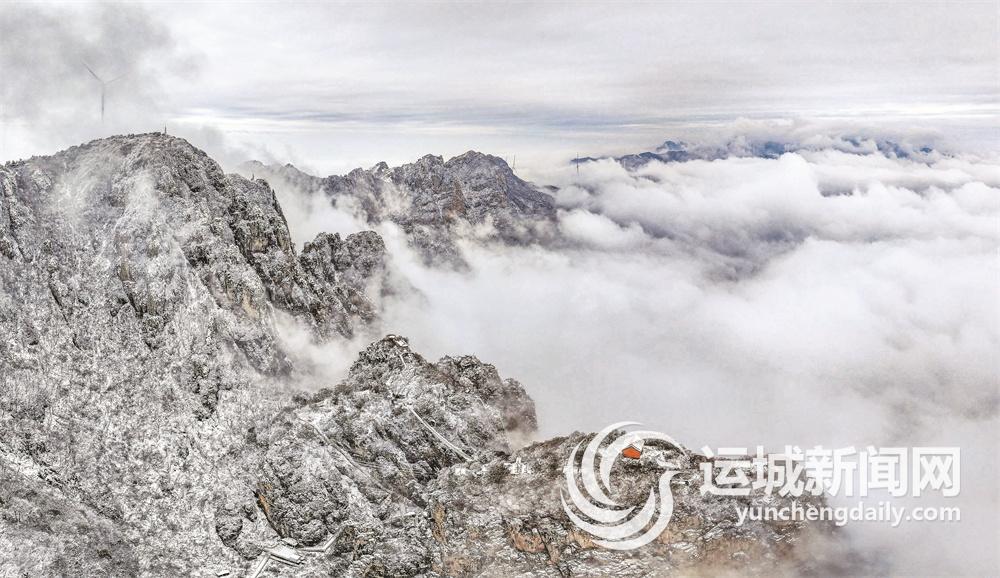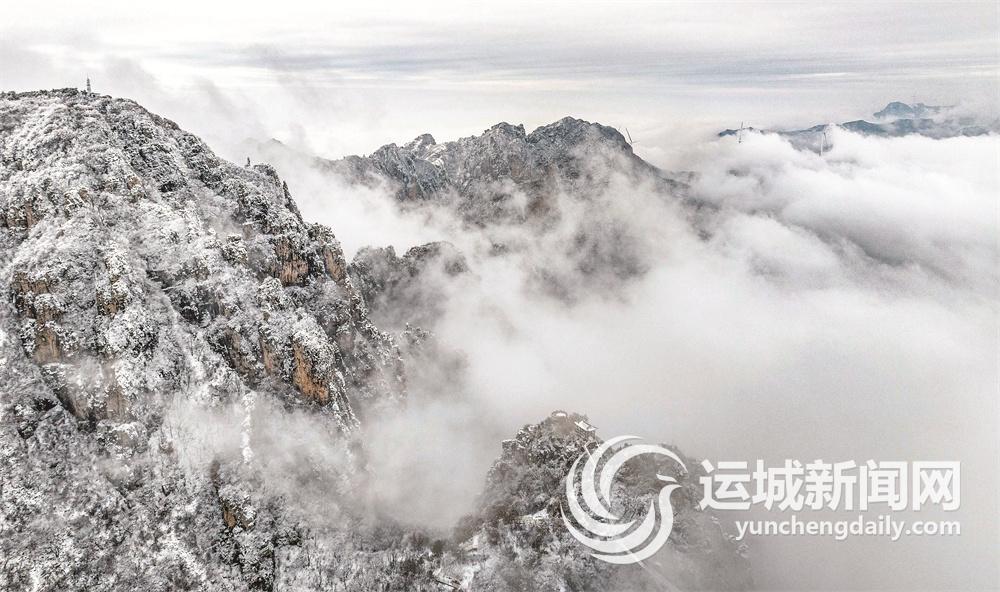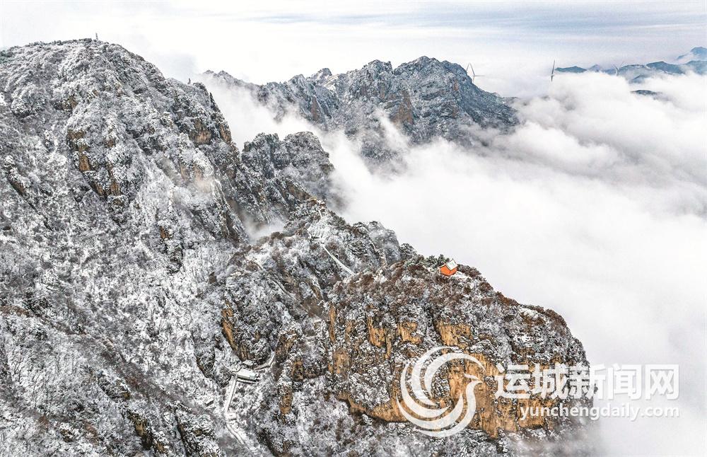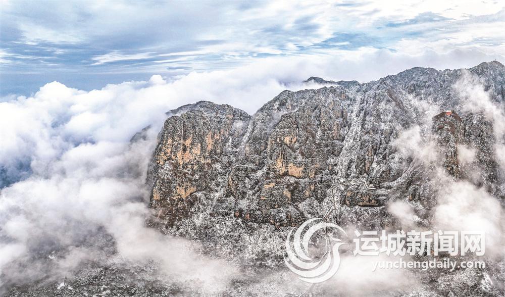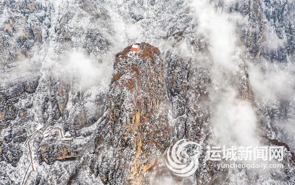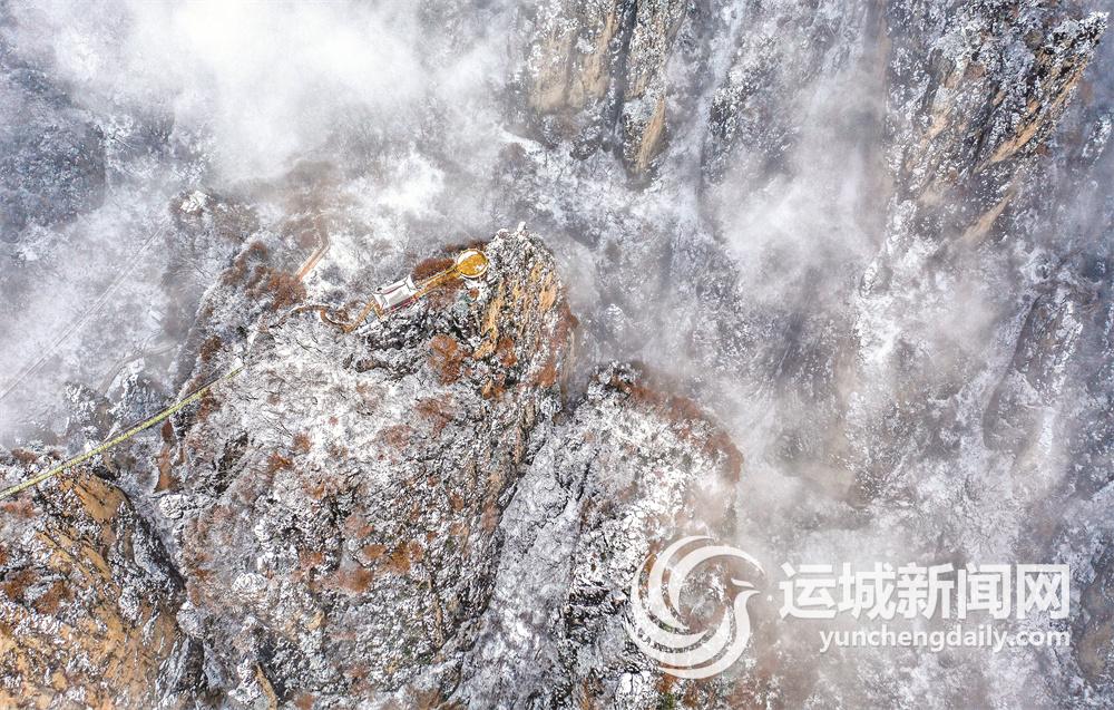 11月18日,永濟(jì)市五老峰景區(qū)喜迎今冬首場(chǎng)降雪。白雪將五老峰裝扮得分外妖嬈,翻騰的云海使五老峰宛如仙境。游客身臨其中,格外心曠神怡。
