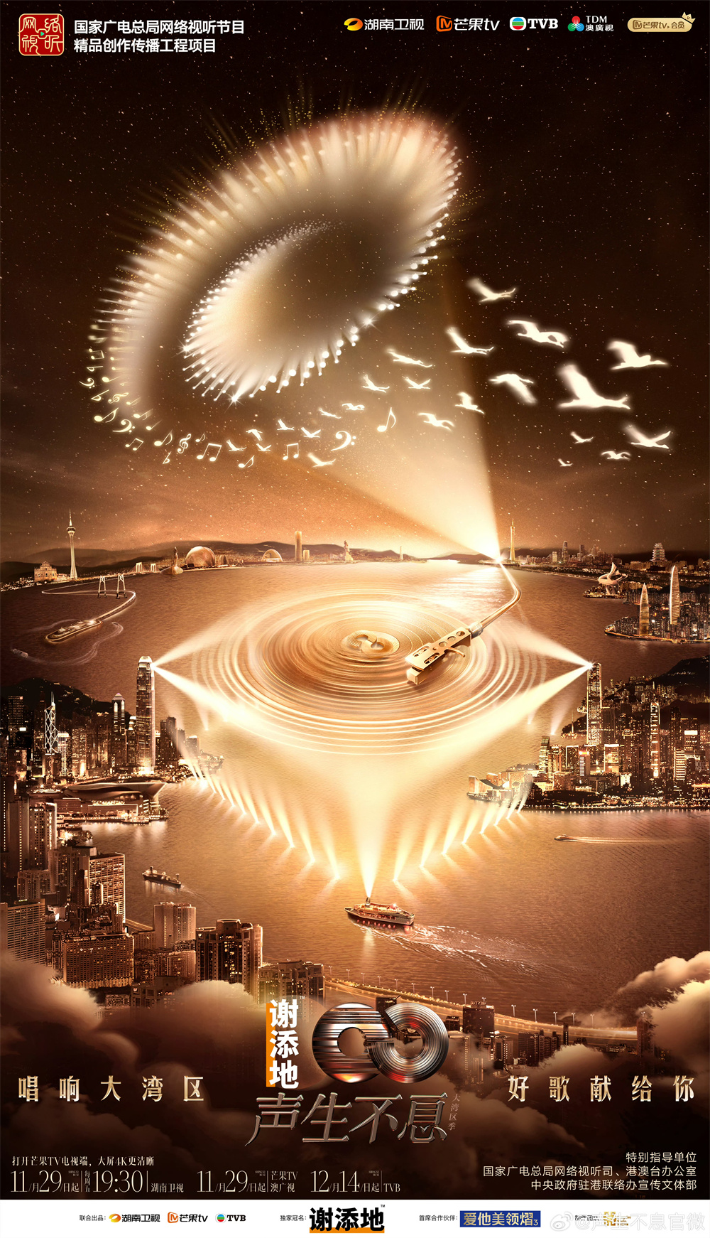 11月28日,音樂文化節(jié)目《聲生不息·大灣區(qū)季》首期節(jié)目在芒果TV上線播出。李宇春、周筆暢、陳小春、古巨基、容祖兒、譚詠麟、陳慧嫻、周慧敏等流行歌手齊聚《聲生不息》的舞臺,回憶那些與港樂有關(guān)的人和事,承續(xù)港樂經(jīng)典,啟航灣區(qū)音樂新章。