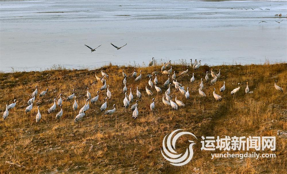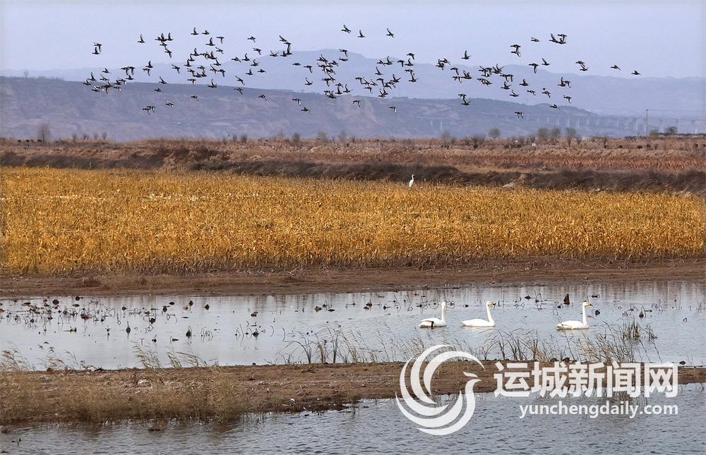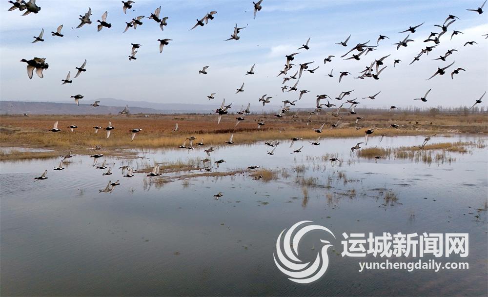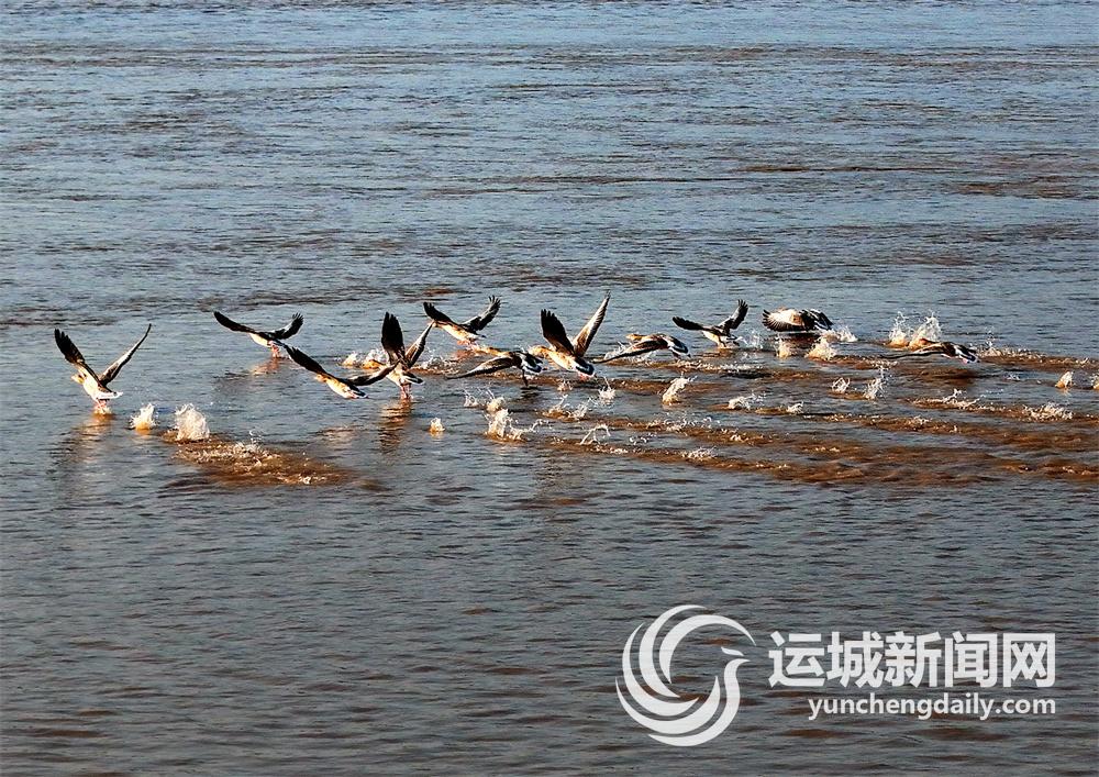 隨著氣溫下降,萬榮縣黃河岸邊迎來了大批越冬候鳥,遠遠望去,恰是一幅黃河冬日畫卷。