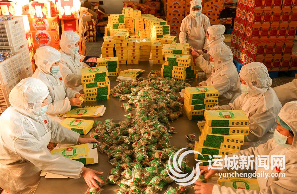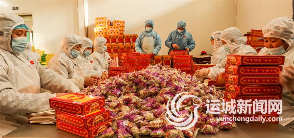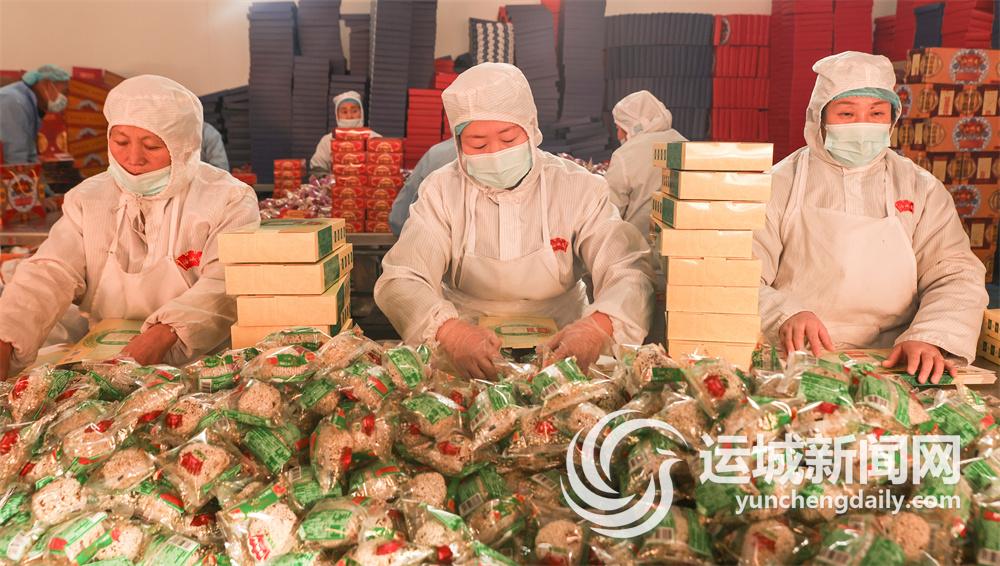 隨著春節(jié)的臨近,聞喜縣桐城鎮(zhèn)東吳村的一食品公司內(nèi),員工們在加緊生產(chǎn)包裝煮餅產(chǎn)品,以供應(yīng)省內(nèi)外年貨市場。