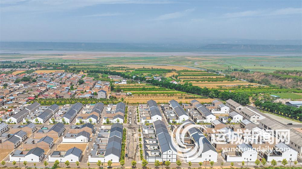 萬榮縣榮河鎮(zhèn)黃河岸畔的廟前村移民新區(qū),呈現(xiàn)一派生態(tài)宜人的和美鄉(xiāng)村景象。