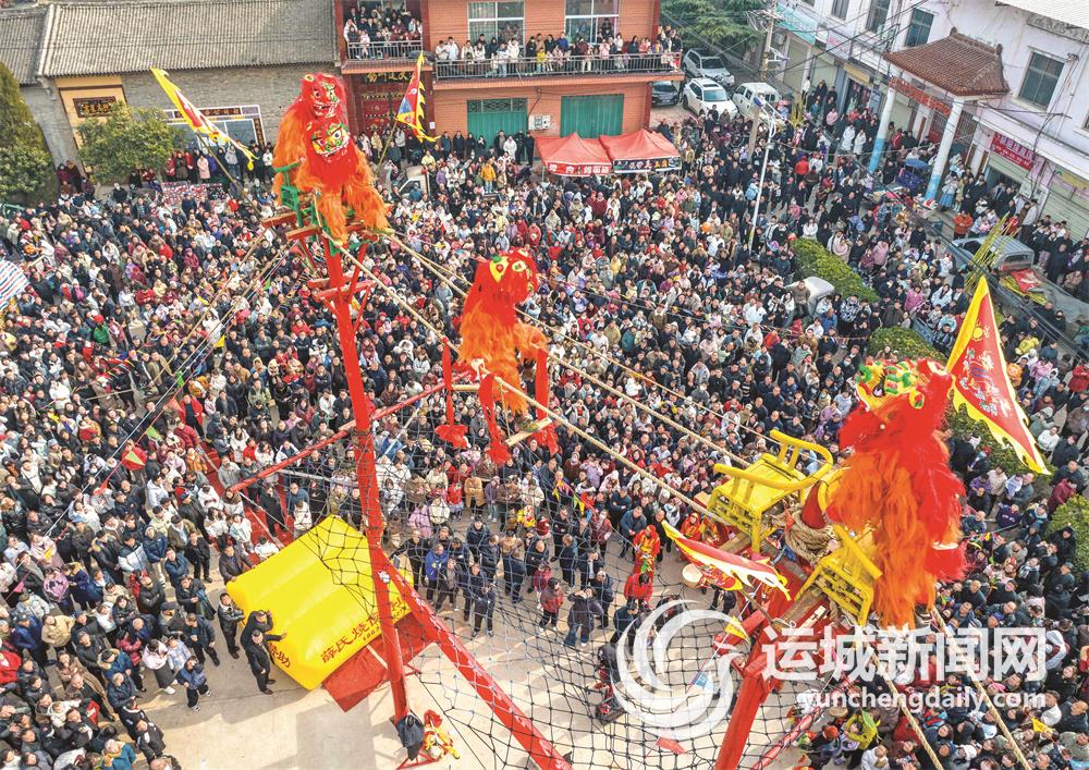 永濟(jì)土樂飛獅起源于清朝年間的“土樂飛獅”,距今已有300多年歷史,2011年被列入山西省非物質(zhì)文化遺產(chǎn)名錄,以獨特驚險的表演形式,展現(xiàn)了當(dāng)?shù)厣詈竦膫鹘y(tǒng)文化魅力。這是農(nóng)民純樸執(zhí)著的個性展示,是一種生命和力量的象征,是不可復(fù)制的珍品。