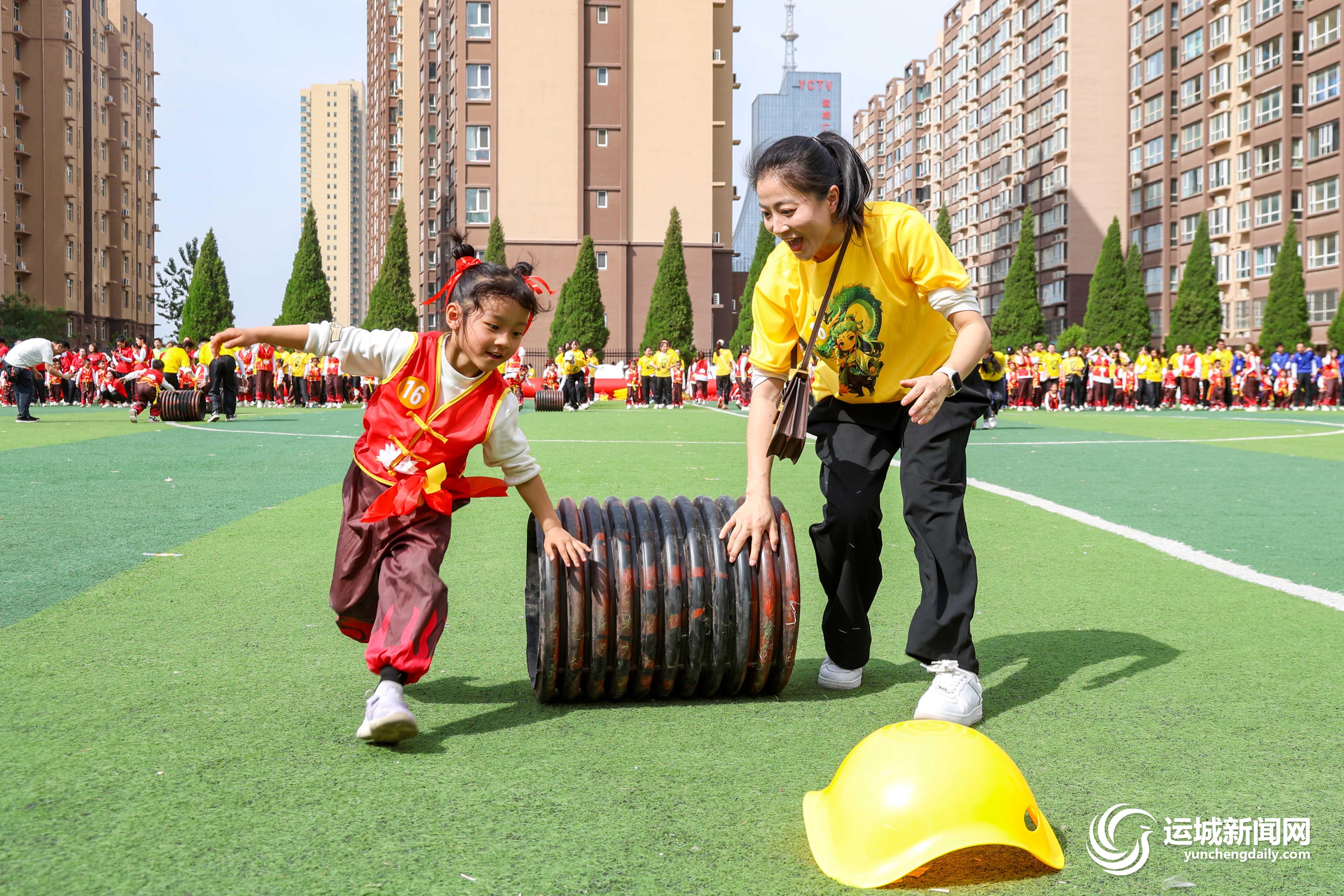 4月18日,鹽湖區(qū)第二實(shí)驗(yàn)幼兒園的學(xué)生和家長(zhǎng)在參與親子運(yùn)動(dòng)。