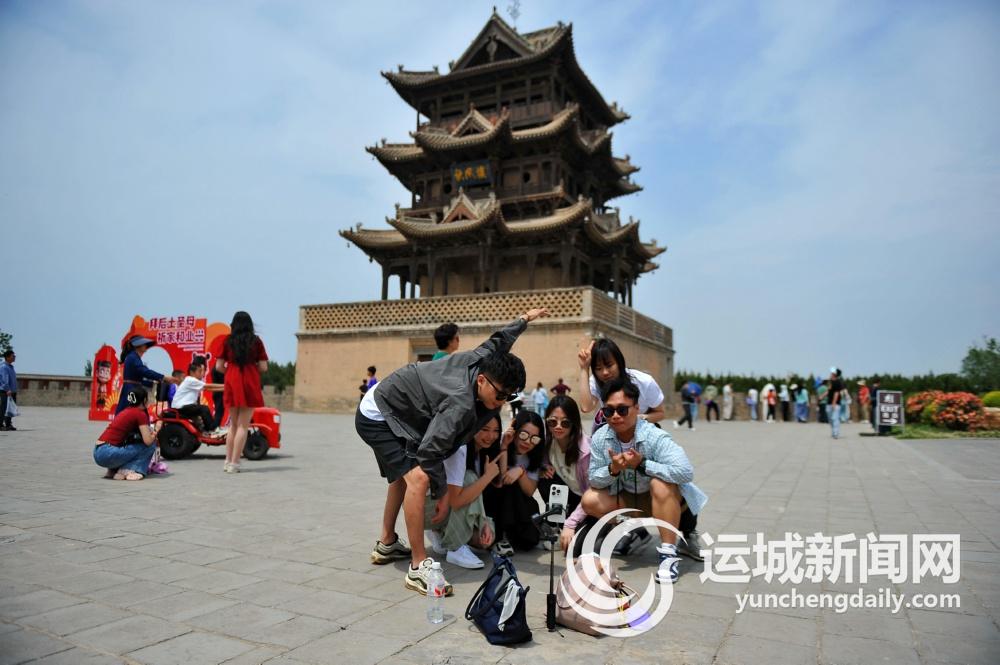 5月4日,游客在萬榮縣后土祠景區(qū)拍照打卡。