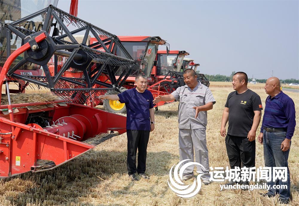 “我們今年種了800多畝小麥,麥?zhǔn)战Y(jié)束后,馬上就要秋糧復(fù)播,要購買玉米種子和有機(jī)肥?!薄昂献魃邕€接到兩萬多畝小麥的收割訂單,趁著天氣晴好,要盡快把小麥?zhǔn)崭?、轉(zhuǎn)運(yùn)、打包,為農(nóng)戶做好服務(wù)。”董會龍一邊注視著正在作業(yè)的農(nóng)機(jī),一邊通過手機(jī)與農(nóng)機(jī)手交談,估算小麥產(chǎn)量。