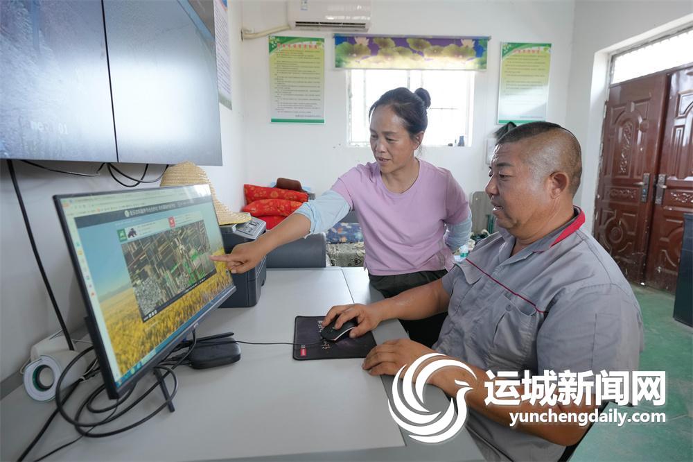 董會龍夫婦在農(nóng)機(jī)精準(zhǔn)作業(yè)平臺查看合作社農(nóng)機(jī)手作業(yè)情況。