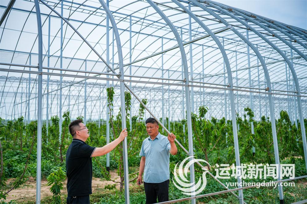 臨猗縣北景鄉(xiāng)西村村黨支部書記兼村委會(huì)主任張世紅和駐村干部吳勇商討櫻桃示范園建設(shè)情況。