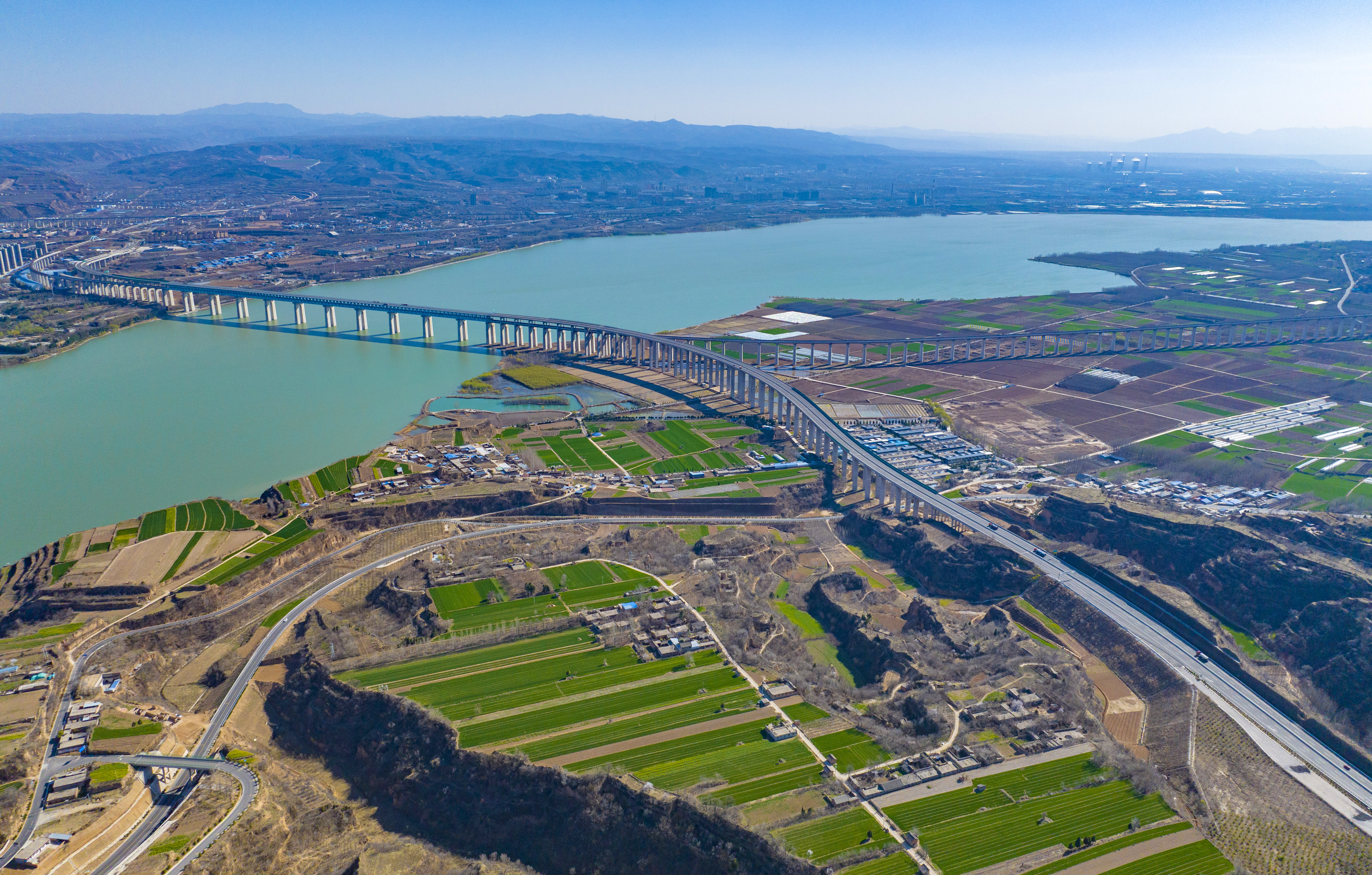 垣曲縣境內(nèi)黃河岸旁公路蜿蜒,農(nóng)田點(diǎn)綴,盡顯雄渾與靈秀。