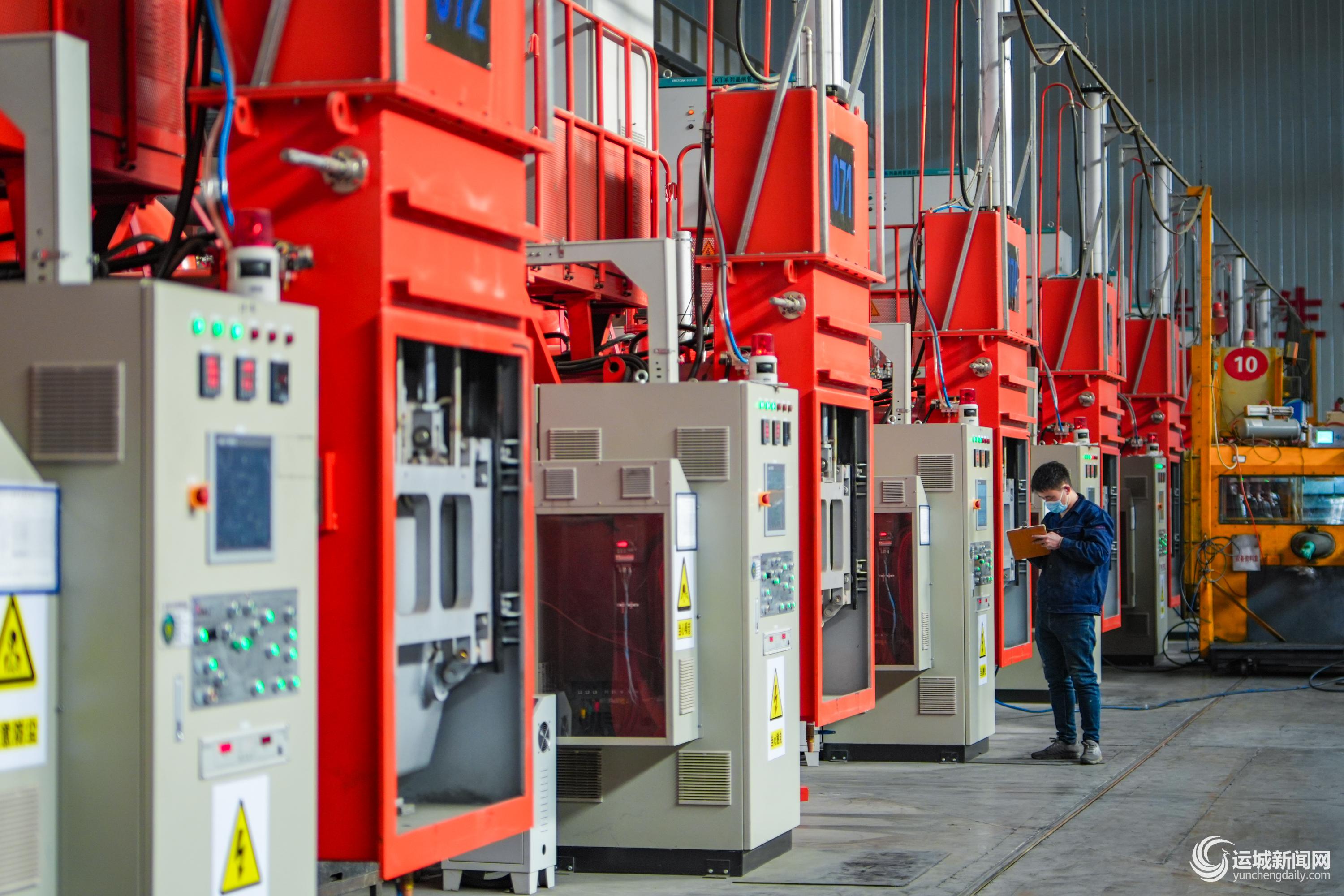 位于永濟(jì)市的山西陽(yáng)煤千軍汽車(chē)部件有限責(zé)任公司新能源汽車(chē)配件產(chǎn)業(yè)園生產(chǎn)車(chē)間,智能化機(jī)器手臂在不間斷生產(chǎn),滿足訂單需求。