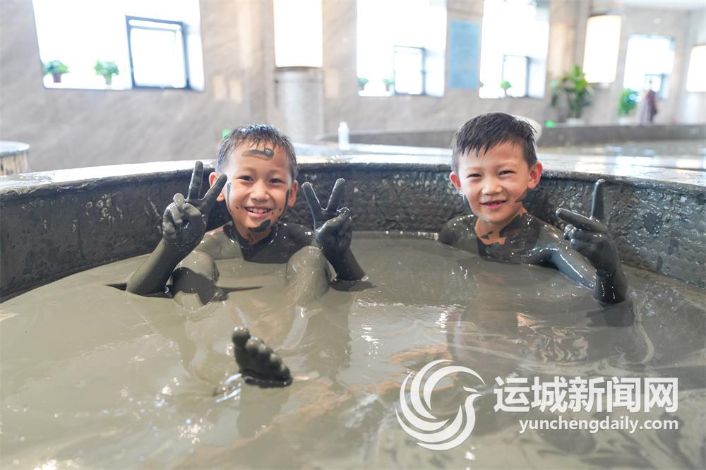 游客在運(yùn)城鹽湖景區(qū)體驗(yàn)黑泥浴