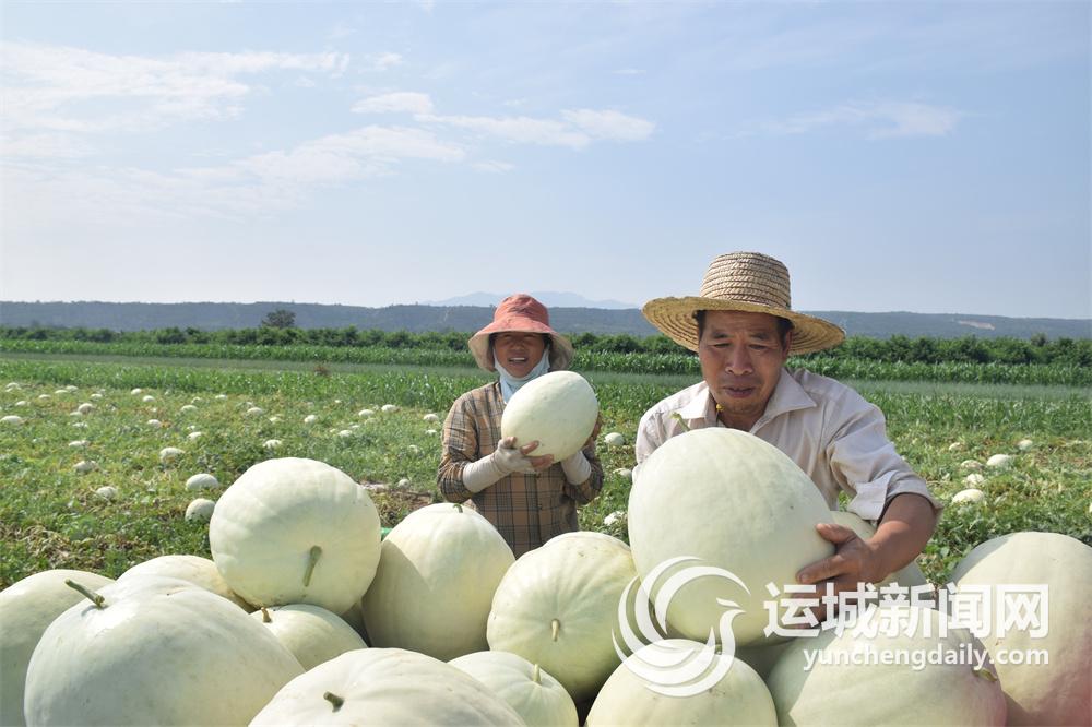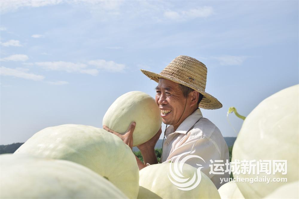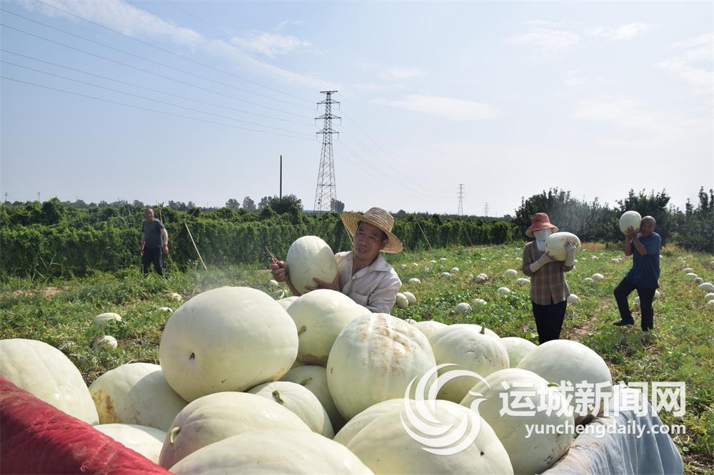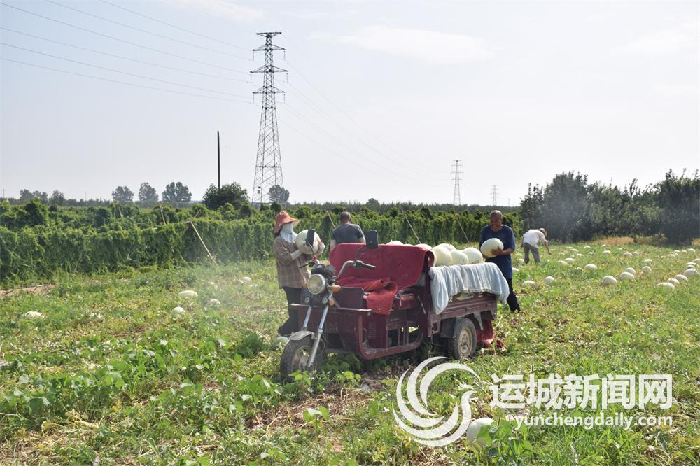 7月17日,萬榮縣南張鄉(xiāng)萬榮莊村的馮向東在大田采摘三白瓜,為客商備貨。