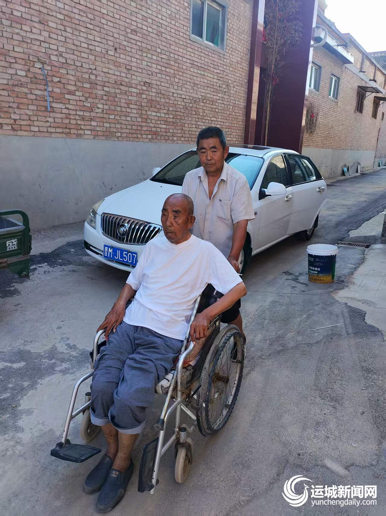 劉勛申,1930年生,1945年4月參軍,曾任八路軍55團(tuán)戰(zhàn)士。圖為兒子劉安慶推著劉勛申在戶外活動。
