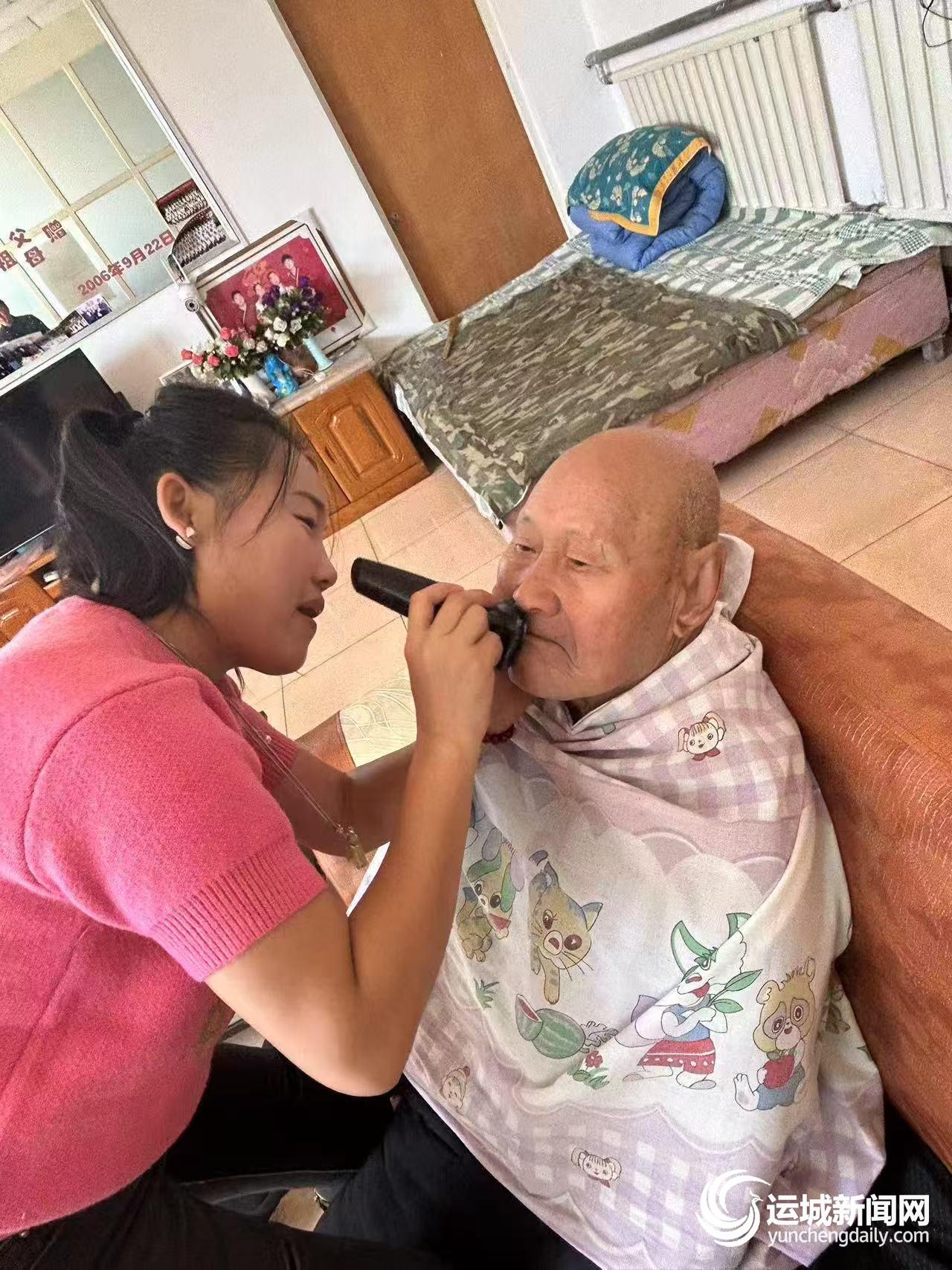 姚孝先,1925年生,山西沁縣人,1944年加入中國共產(chǎn)黨,曾任安澤五區(qū)村武委會主任。圖為姚禾苗在照顧父親姚孝先。