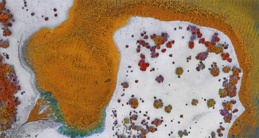 鹽湖的“像”,終成于化。正如《周易》所言:“觀乎人文,以化成天下?!蓖高^我市中國(guó)攝影家協(xié)會(huì)會(huì)員董文漢的鏡頭,以俯瞰萬(wàn)物的宏闊視角,輔以無(wú)拘無(wú)束的發(fā)散思維,再次對(duì)鹽湖進(jìn)行全域凝視,你會(huì)驚訝地發(fā)現(xiàn),浮現(xiàn)在人們眼前的,是一幅幅以鹽湖為載體的文明全息圖。