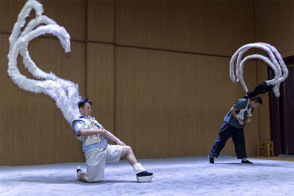 戲曲界有這樣的說法,“凍不死的青衣,熱不死的花臉”,紙幡功演員同樣也需要經(jīng)受高溫的考驗(yàn)。