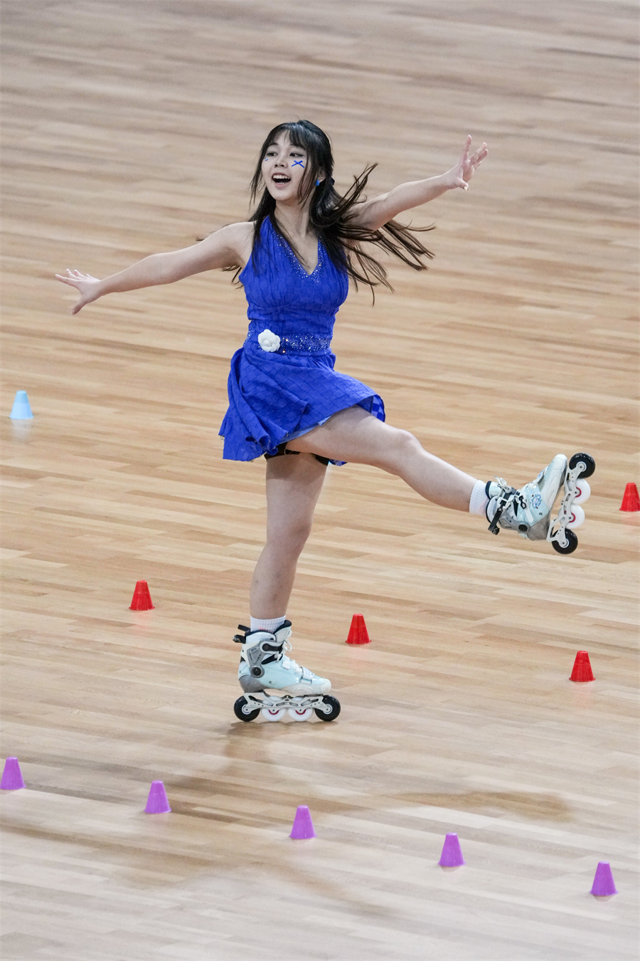 當(dāng)日,在成都輪滑運(yùn)動中心舉行的2025年成都世運(yùn)會自由式輪滑女子花式繞樁決賽中,中國選手朱思怡、劉佳欣包攬冠亞軍。