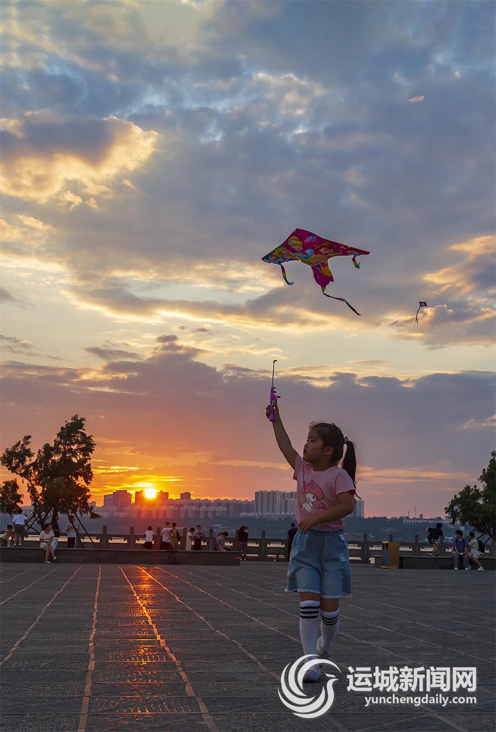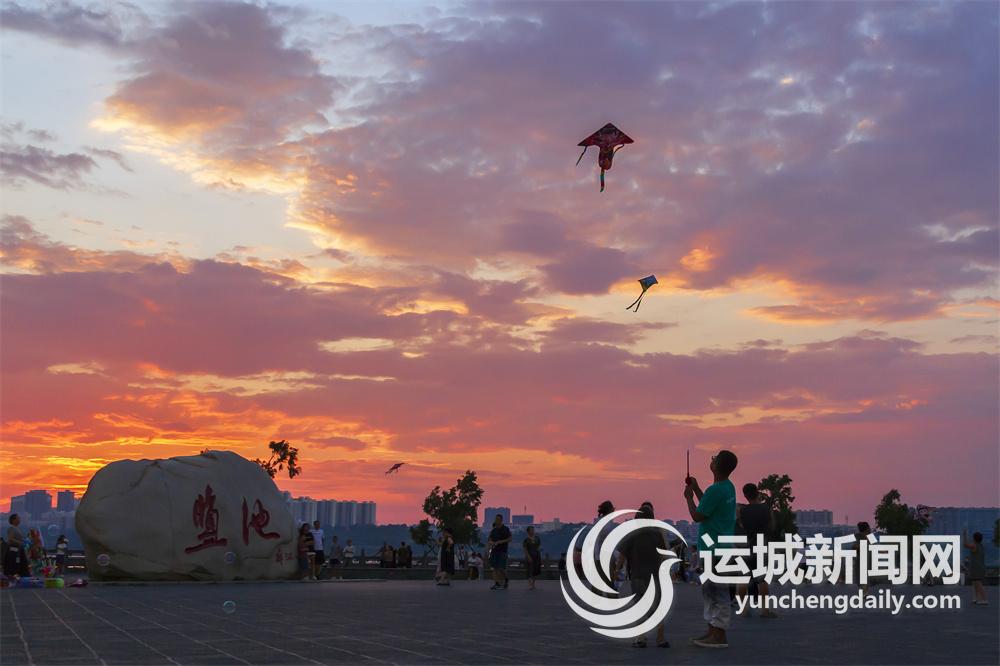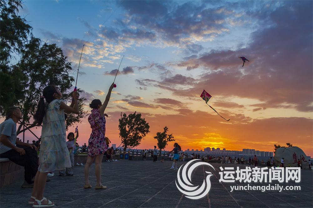 連日來(lái),市民和游客在運(yùn)城鹽湖景區(qū)觀景臺(tái)吹風(fēng)納涼,放飛紙鳶,享受著暑期的愜意。舞動(dòng)的風(fēng)箏在夕陽(yáng)的映襯下,勾勒出一幅動(dòng)人的落日紙鳶圖。
