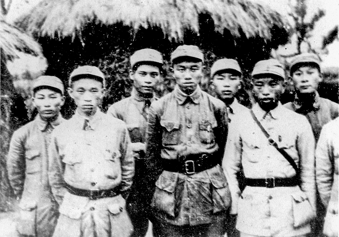 這是1939年初,新四軍第一支隊(duì)二團(tuán)部分干部在茅山的合影。左起第五位為蕭國生(資料照片)。新華社發(fā)