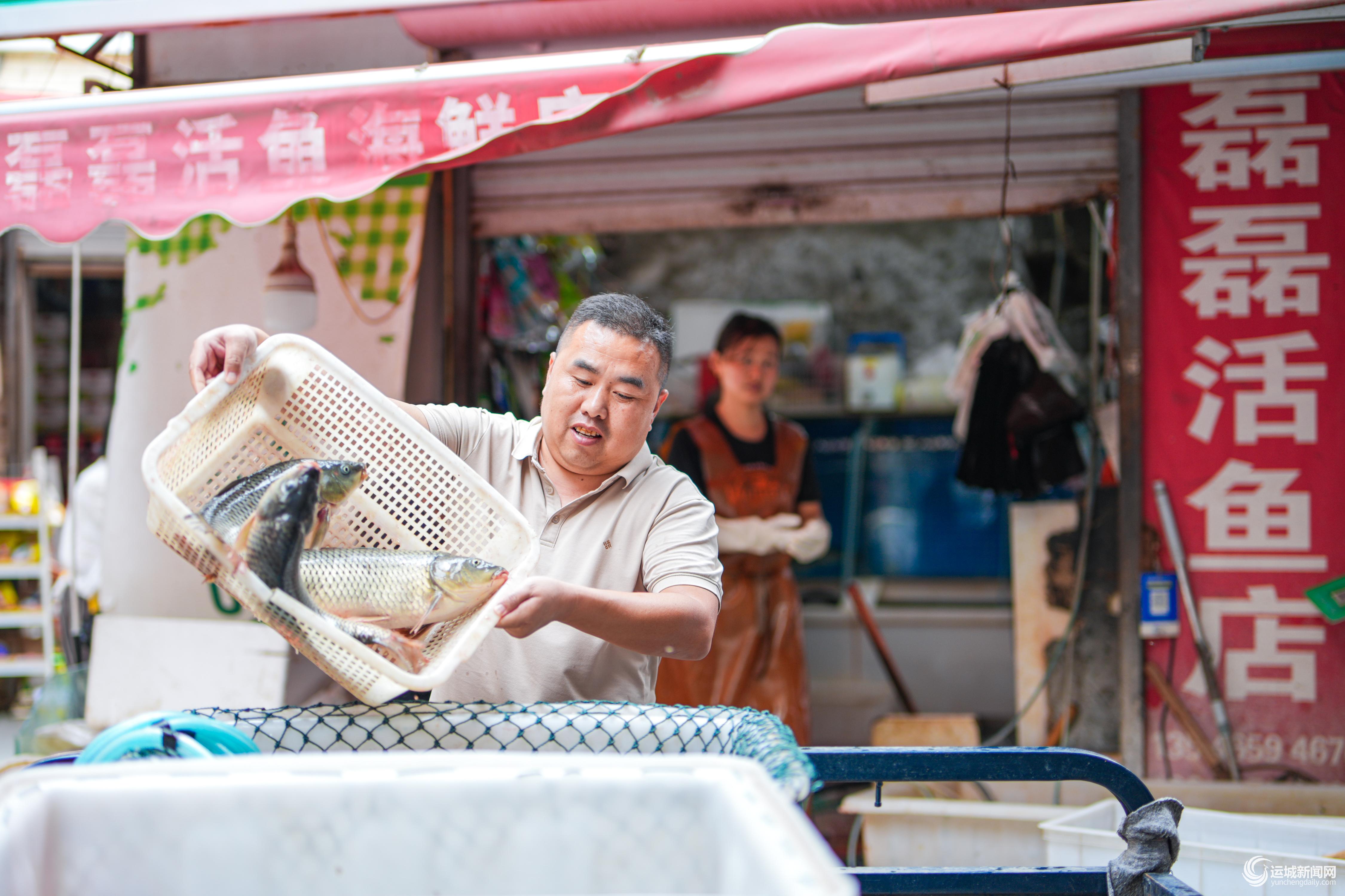 在馮廣紅的介紹下,記者來到中心城區(qū)八一市場(chǎng),人聲鼎沸中,看到了正在抓魚的磊磊活魚店老板何銀磊。“這魚是今天凌晨4點(diǎn)多從蒲州鎮(zhèn)拉來的,金鱗赤尾,條形好,肉質(zhì)也特別好?!焙毋y磊笑著說,“我們天天去永濟(jì)拉魚,鯉魚現(xiàn)在是8塊錢一斤,一天能賣千八百斤,除了在店里零售外,我們還給外面超市、小市場(chǎng)送貨?!?/p>