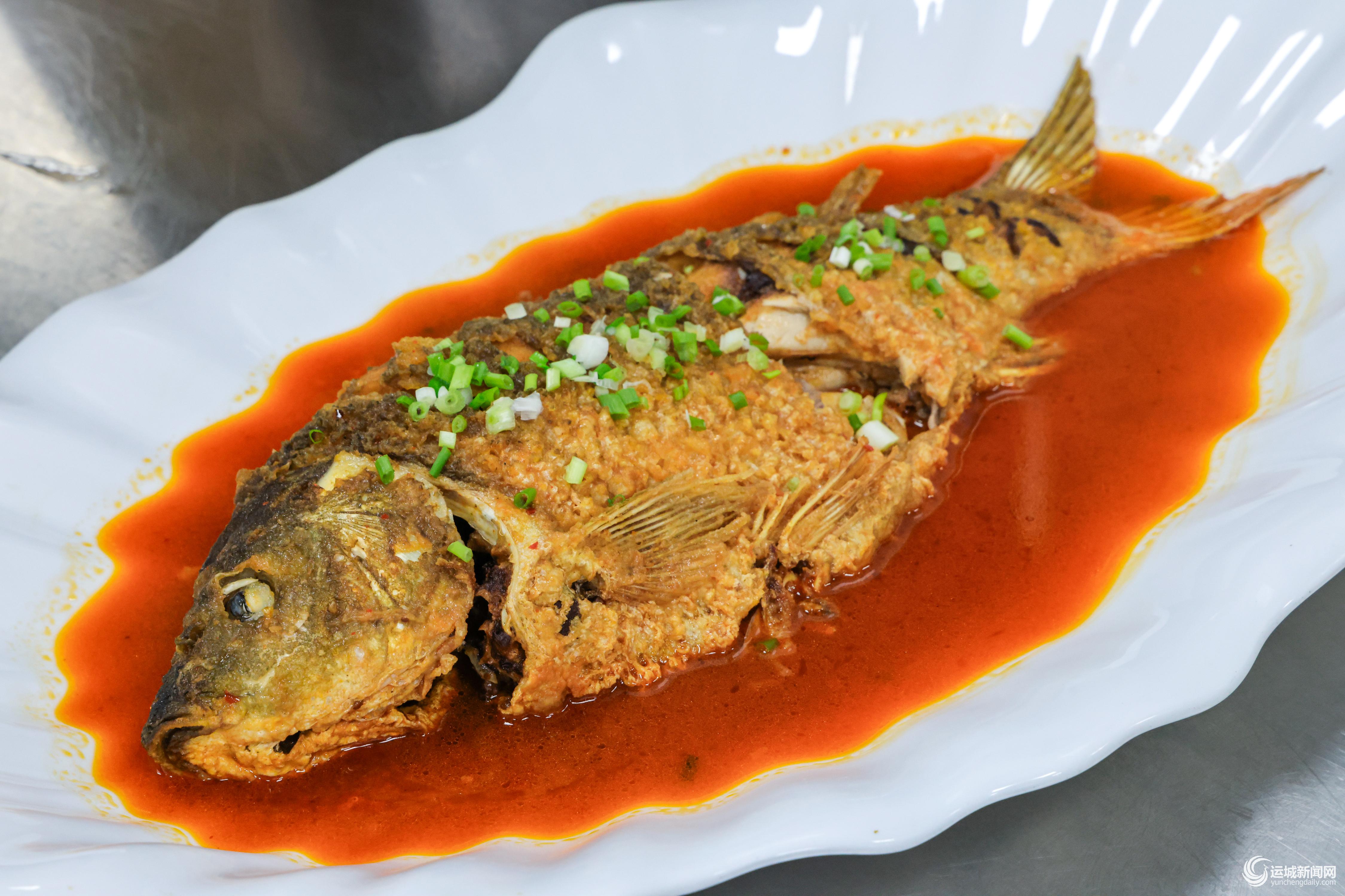 運(yùn)城賓館燒制后裝盤的黃河大鯉魚菜品。