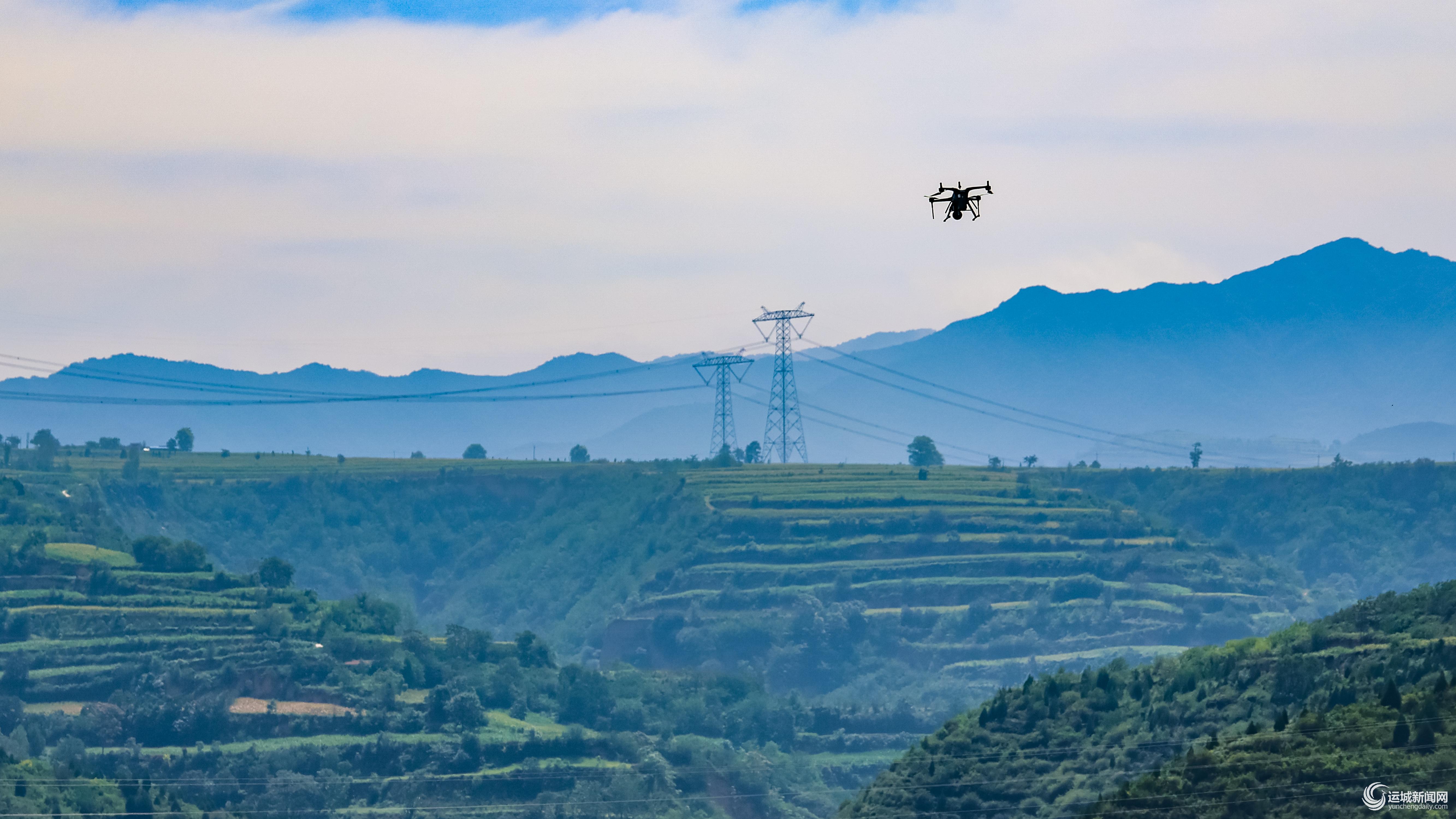 夏都空域的一架無人機在中條山林區(qū)開展防火巡護。