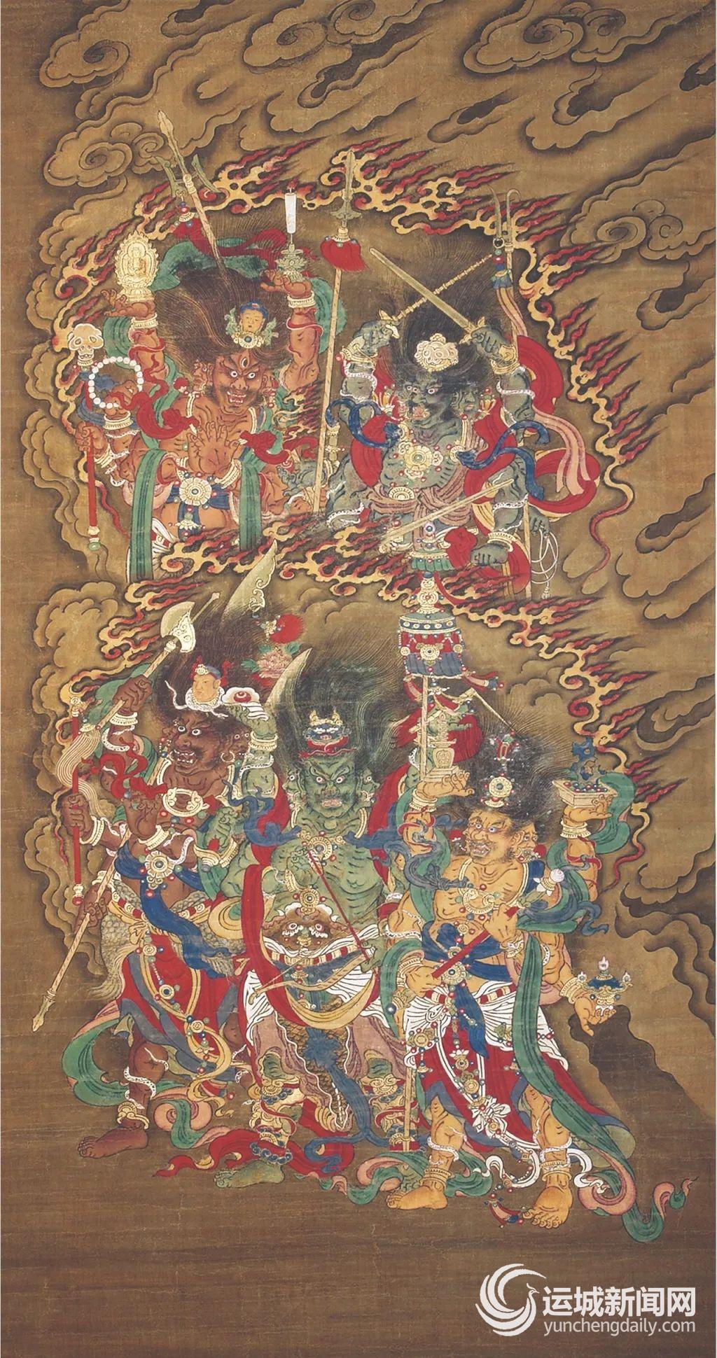 在河?xùn)|地區(qū),水陸畫(huà)可是有著特殊的意義和文化價(jià)值。像稷山縣青龍寺、聞喜縣吳呂后稷廟,是全國(guó)為數(shù)不多保存有水陸畫(huà)的地方。水陸畫(huà)起源于佛教的水陸法會(huì),是把佛、道、儒三家的內(nèi)容都融合在一起的繪畫(huà)形式。這些畫(huà)不僅好看,還清楚地展現(xiàn)了河?xùn)|地區(qū)老百姓的信仰和精神世界。天兵天將作為神話(huà)體系中的重要角色,在水陸畫(huà)中代表著正義與力量,守護(hù)著世間的安寧。從這些畫(huà)軸能看出,古代河?xùn)|地區(qū)的畫(huà)師技藝精湛,他們用細(xì)膩的筆觸和豐富的顏色,將神話(huà)中的形象栩栩如生地展現(xiàn)在絹帛之上。