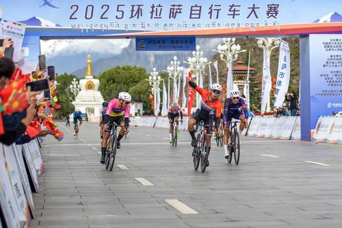 9月14日,選手們?cè)跊_線后慶祝完賽。 當(dāng)日,2025環(huán)拉薩自行車大賽在拉薩市落幕。賽事共設(shè)置公路自行車男子精英組、公路自行車女子精英組、山地自行車男子公開組、山地自行車女子公開組四個(gè)組別。 新華社記者 姜帆 攝