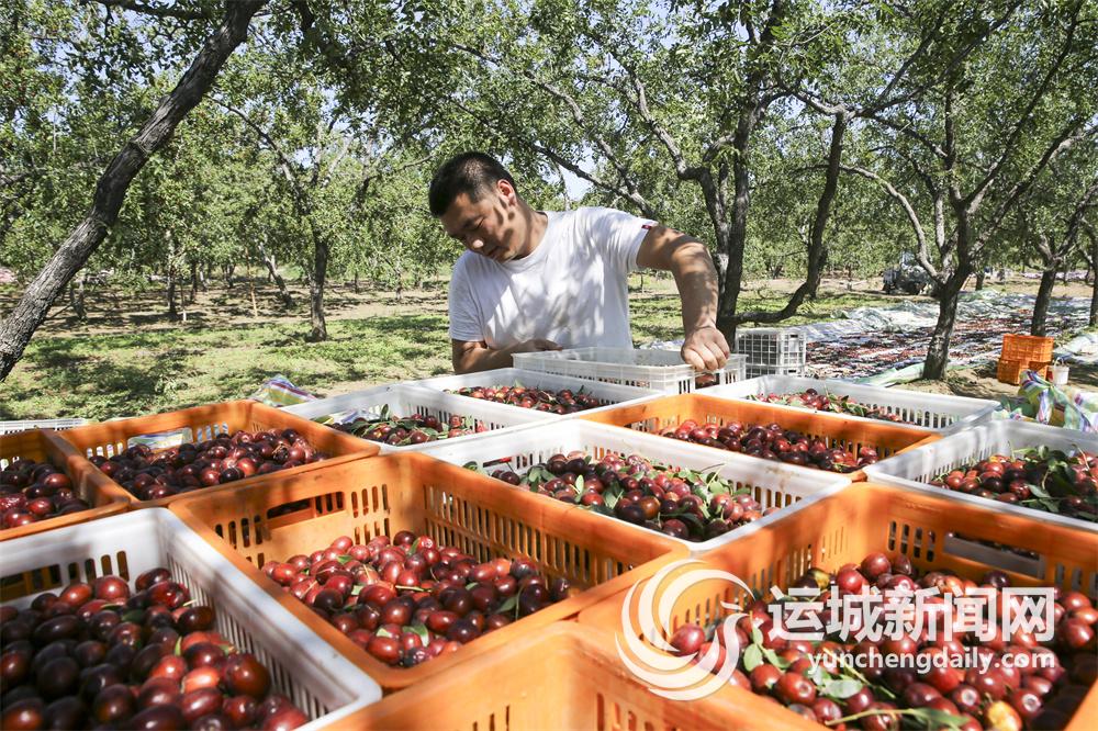 9月25日,稷山縣稷峰鎮(zhèn)姚村、陶梁村的棗園里一派繁忙景象,村民利用晴好天氣緊鑼密鼓地打棗,將一筐筐紅棗拉回家晾曬。 特約攝影 史云平