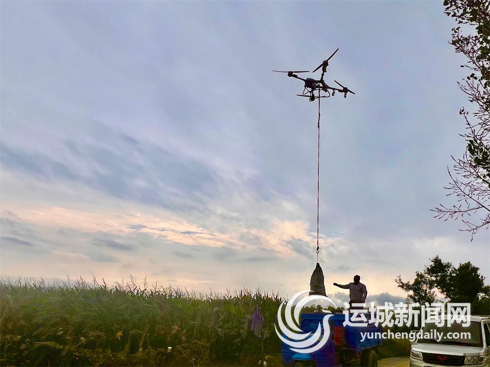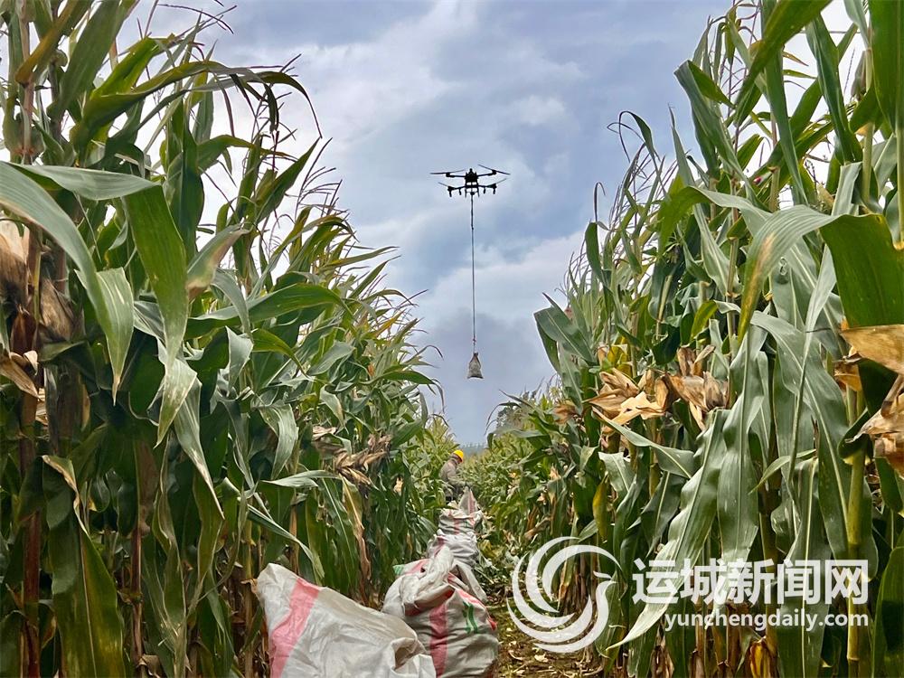 10月9日,平陸縣張店鎮(zhèn)張店村無人機(jī)穿梭田間,開展玉米吊裝作業(yè),成為秋收現(xiàn)場的“新主角”。