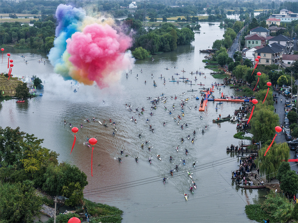 當(dāng)日,2025白塔湖濕地皮劃艇槳板邀請賽在浙江省諸暨市店口鎮(zhèn)白塔湖國家濕地公園舉行,來自全國的250多名皮艇及槳板運動愛好者參加了本次比賽。