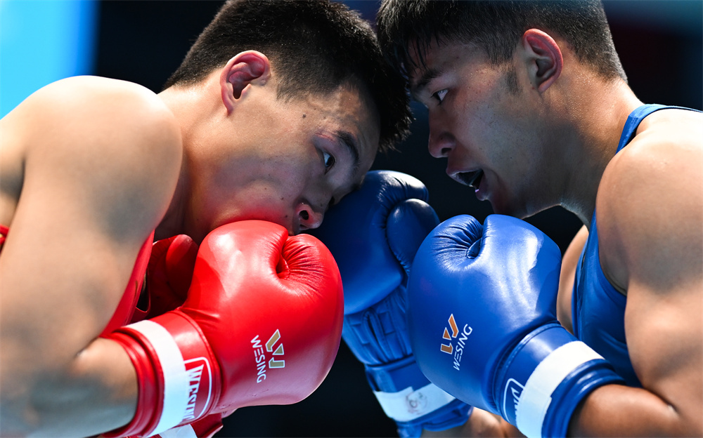 在廣東省深圳市舉行的第十五屆全國運(yùn)動會拳擊男子71公斤級八分之一決賽中,云南隊(duì)選手李國鋒戰(zhàn)勝河北隊(duì)選手呂航,晉級下一輪。