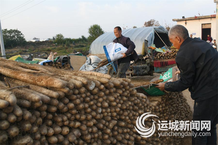 近日,聞喜縣郭家莊鎮(zhèn)郭家莊村山藥種植基地里,村民在采收、打捆山藥,準備銷售。