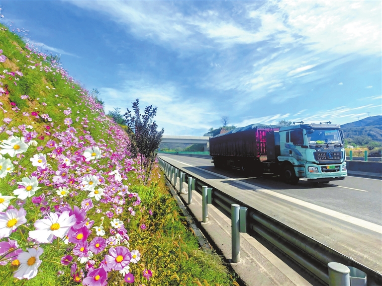 近日,在國(guó)道341古縣下冶段,寬闊的公路上,公路兩側(cè)的邊坡上大片色彩繽紛的花朵絢爛綻放,有粉色、白色等,在藍(lán)天、白云的映襯下,與遠(yuǎn)處的橋梁、山巒共同構(gòu)成了一幅清新且富有生機(jī)的畫(huà)面,展現(xiàn)出公路沿線(xiàn)獨(dú)特的自然與交通交融之美。