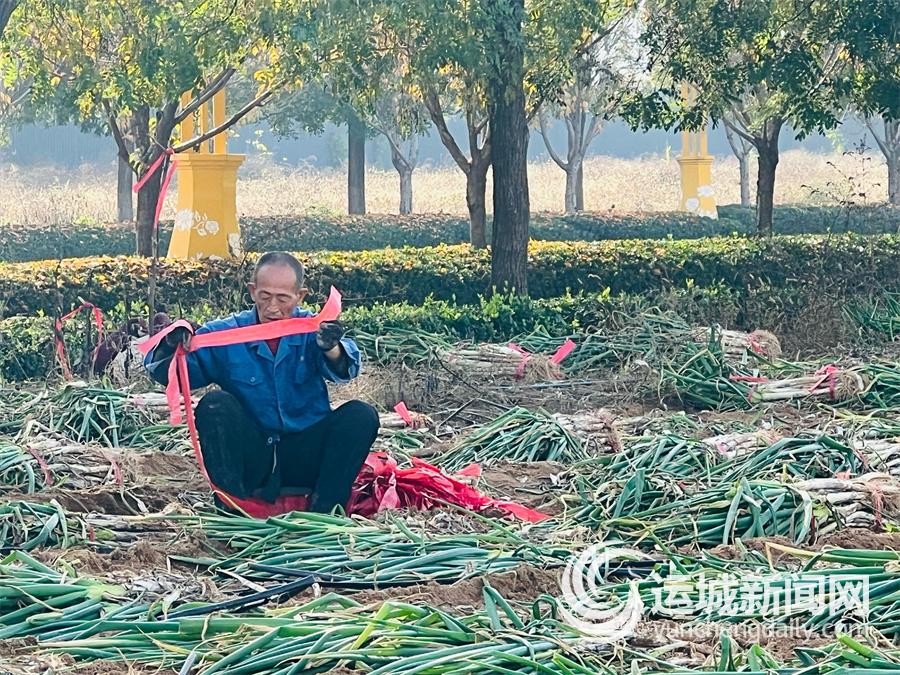 11月11日,萬榮縣解店鎮(zhèn)七莊村村民在收獲大蔥。
